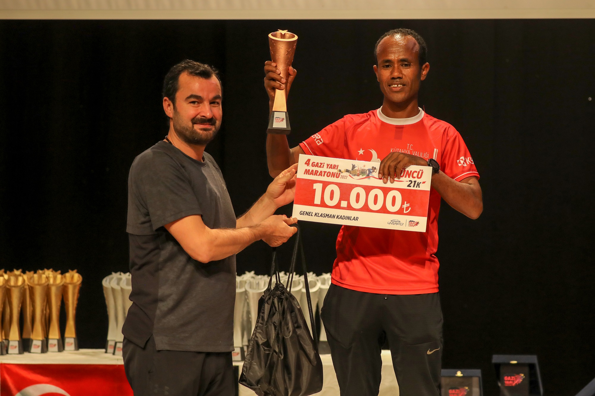 Gaziantep Büyükşehir Belediyesi’nin Antep Savunması’nda verilen 6 bin 317 şehidin anısına Türkiye Atletizm Federasyonu ortaklığı, Gaziantep Valiliği koordinasyonunda bu yıl “Her adımda tarih, her adımda lezzet” mottosu ile dördüncü kez gerçekleştirdiği 21 kilometre Gazi Yarı Maratonu, 10 Kilometre Yol Koşusu ve halk yürüyüşü bu yıl Bartın’da yaşanan son gelişmelerden ötürü sadece sportif alanda sürdürüldü. Ödül töreninde ise sadece isimler açıklanarak derece alan atletlere kupaları ve ödül çekleri takdim edildi.