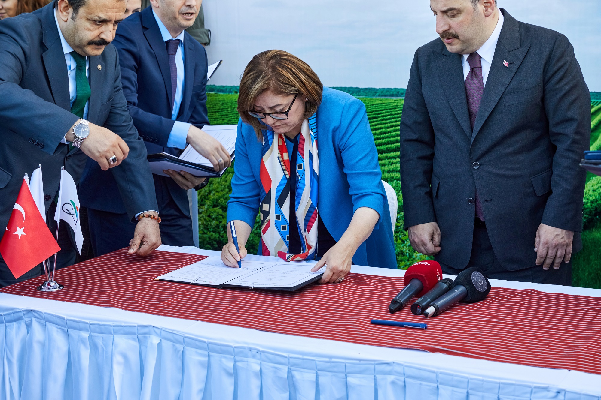 Sanayi ve Teknoloji Bakanlığı GAP Bölge Kalkınma İdaresi Başkanlığı iş birliğinde düzenlenen imza törenine, Bakan Mustafa Varank ve Büyükşehir Belediye Başkanı Fatma Şahin katıldı.