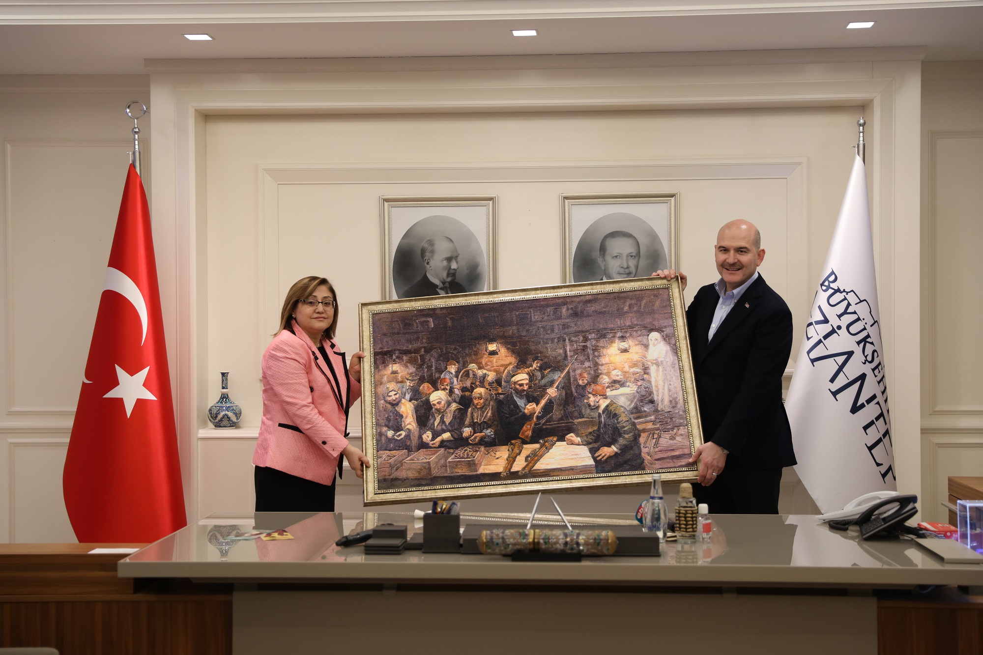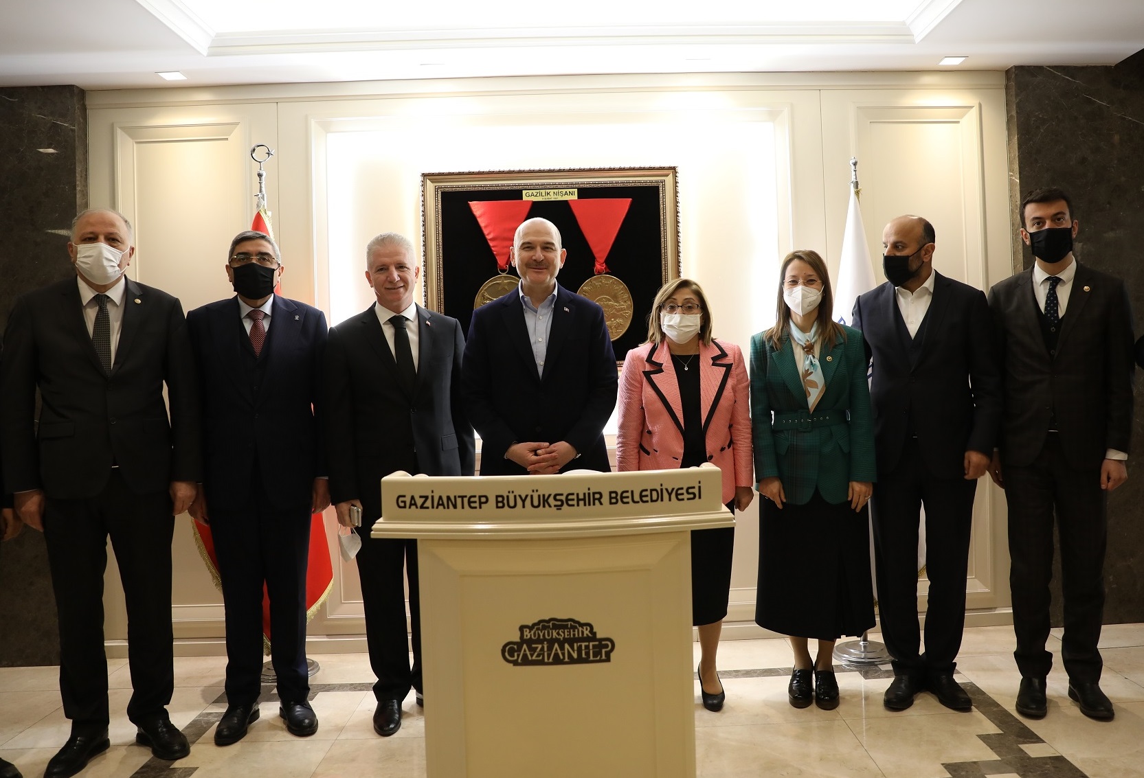 İçişleri Bakanı Süleyman Soylu, Gaziantep Büyükşehir Belediye Başkanı Fatma Şahin’i makamında ziyaret etti. Bakan Soylu yaptığı açıklamada daha iyi hizmet verme düşüncesinde olduklarının altını çizerek “Gaziantep’teki bu güzel ve asil şehrin insanlarına dünyanın en güvenli şehri yakışır” ifadelerini kullandı.