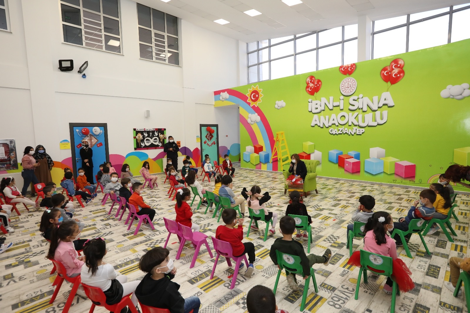 “Eğitim Dostu Gaziantep”, “Genç Dostu Kent” anlayışından hareketle gençler ve çocuklarla olan bağını gün geçtikçe kuvvetlendiren Büyükşehir Belediye Başkanı Fatma Şahin, gittiği İbni Sina Anaokulu’nda çocuklarla buluştu. “Uçmaya Korkan Uğur Böceği” masalını okuyan Başkan Fatma Şahin, öğrencilere gelecekte hangi mesleği yapmak istediklerini sordu. İl Milli Eğitim Müdürü Yasin Tepe’nin de bulunduğu masal okuma etkinliği sonrası, öğretmenlerle sohbet eden Şahin, istek ve talepler üzerine konuştu ve yeni tip Koronavirüs (Kovid-19) sürecinde salgından korunmak adına çocuklara temel bilgileri paylaştı.