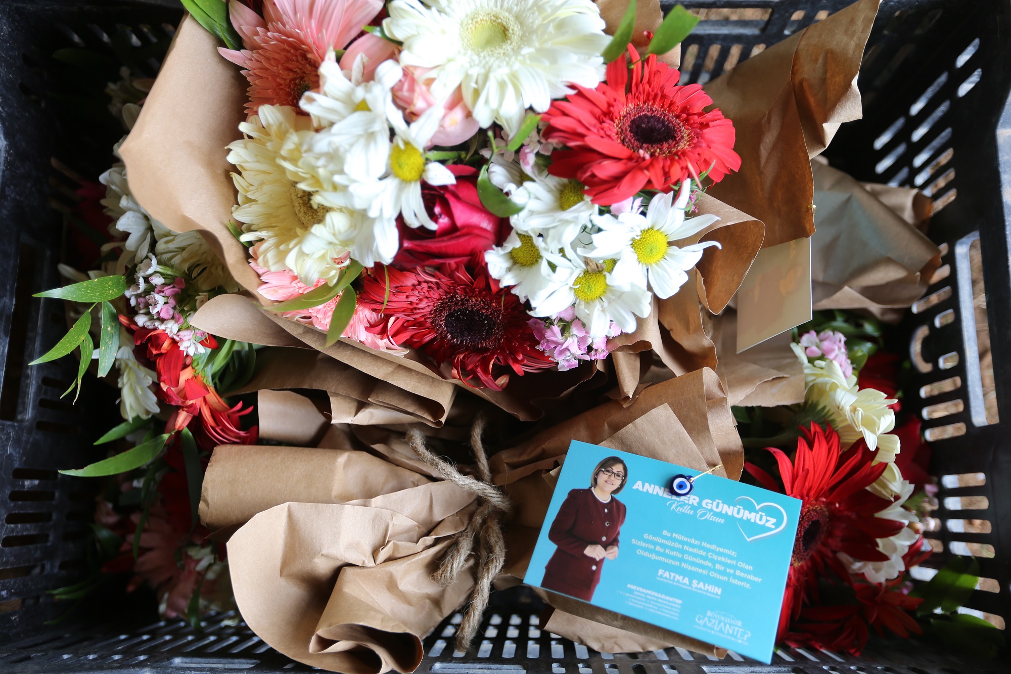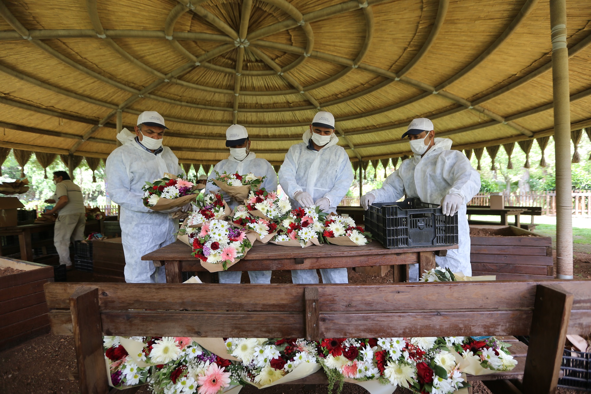 Gaziantep Büyükşehir Belediyesi’ne bağlı Botanik Bahçesi’nde çiçekçilerden alınan buketler toplandı. Çiçeklerin üzerinde Büyükşehir Belediye Başkanı Fatma Şahin’in mesajının da olduğu buketler hazırlanarak dağıtıma hazır hale getirildi. 90 firmadan alınan buketler, binlerce 65 yaş ve üzeri kadına Anneler Günü öncesi hediye edildi.