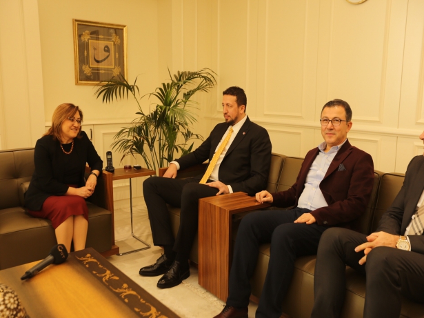Karataş Şahinbey Spor Salonu’nda Yakın Doğu Üniversitesi ile Fenerbahçe arasında oynanacak 25’inci Kadınlar Cumhurbaşkanlığı Kupası müsabakasını izlemek için Gaziantep’e gelen Türkiye Basketbol Federasyonu Başkanı Türkoğlu, Başkan Şahin’le, basketbolu konuştu.