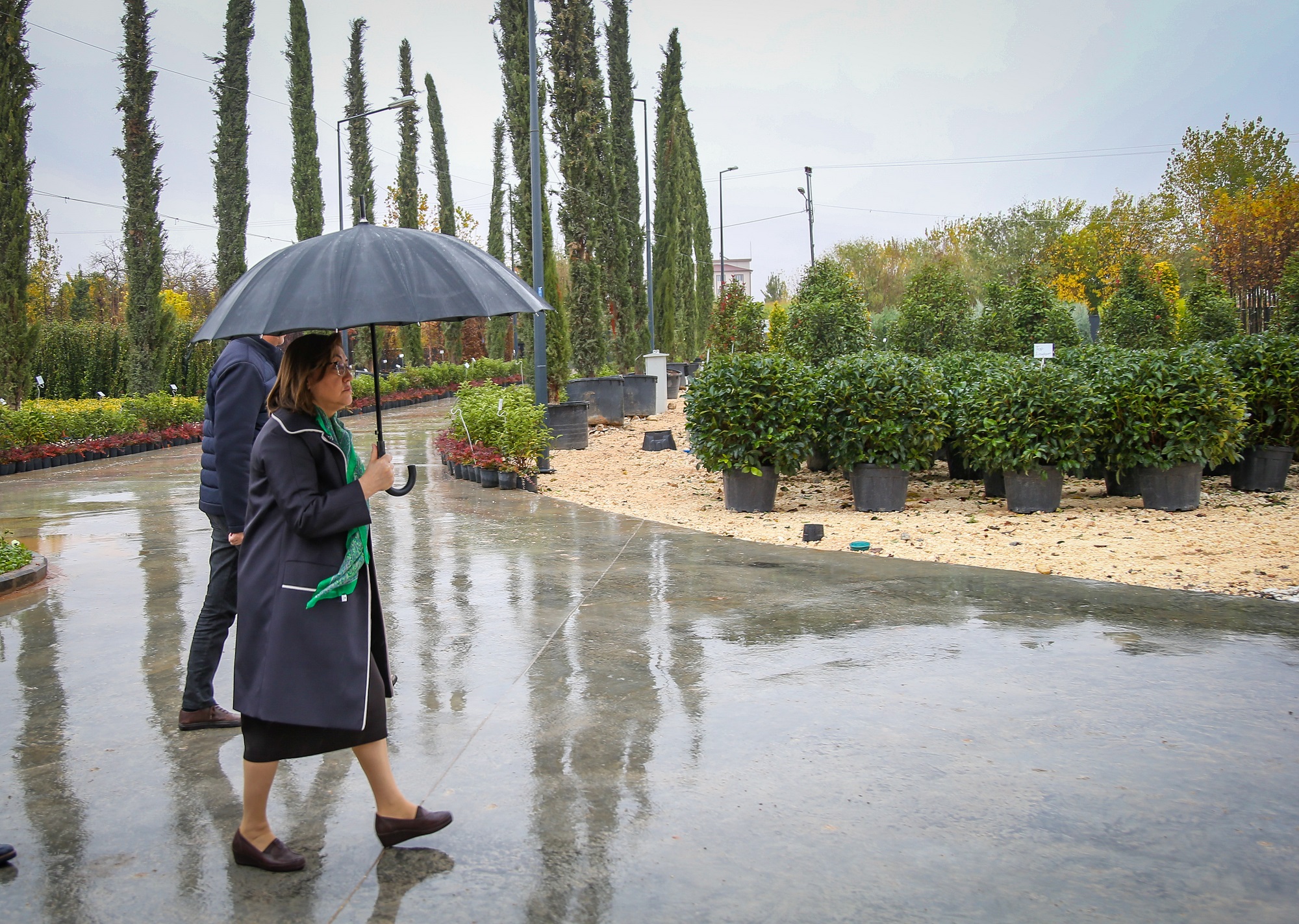 Gaziantep Büyükşehir Belediye Başkanı Fatma Şahin, Büyükşehir Belediyesi tarafından Oğuzeli ilçesinde kurulan fidanlıkta incelemede bulundu.
