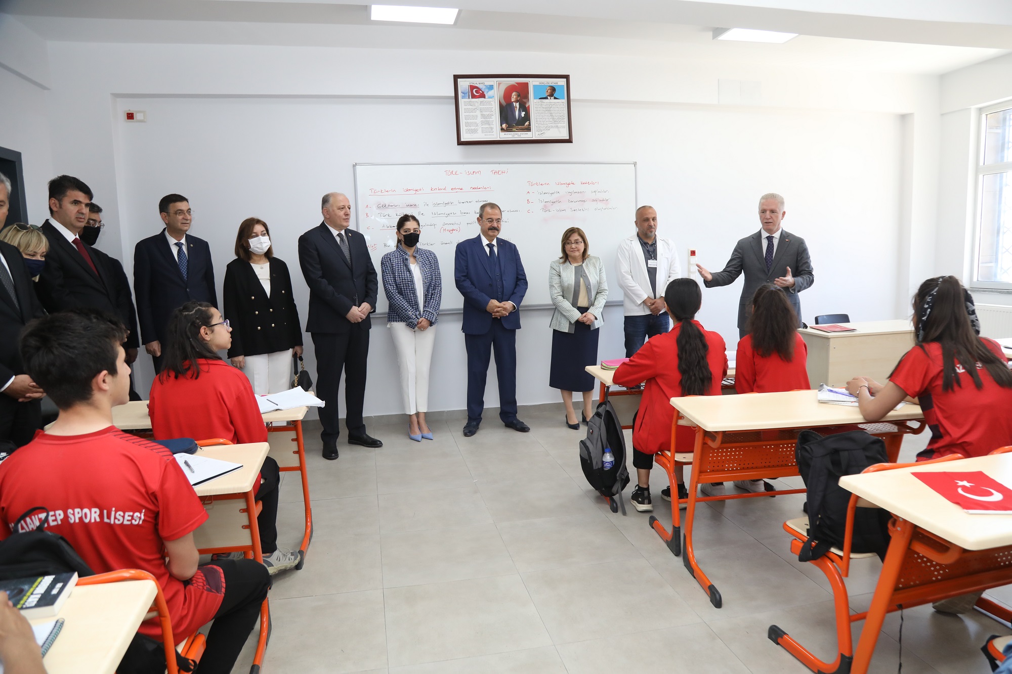 Açılış konuşmaları sonrasında Büyükşehir Belediye Başkanı Fatma Şahin ve protokol, kurdele kesim töreninin ardından Konukoğlu Ailesi’nin hizmete aldığı Adil Sani Konukoğlu Spor Lisesi gezdi.