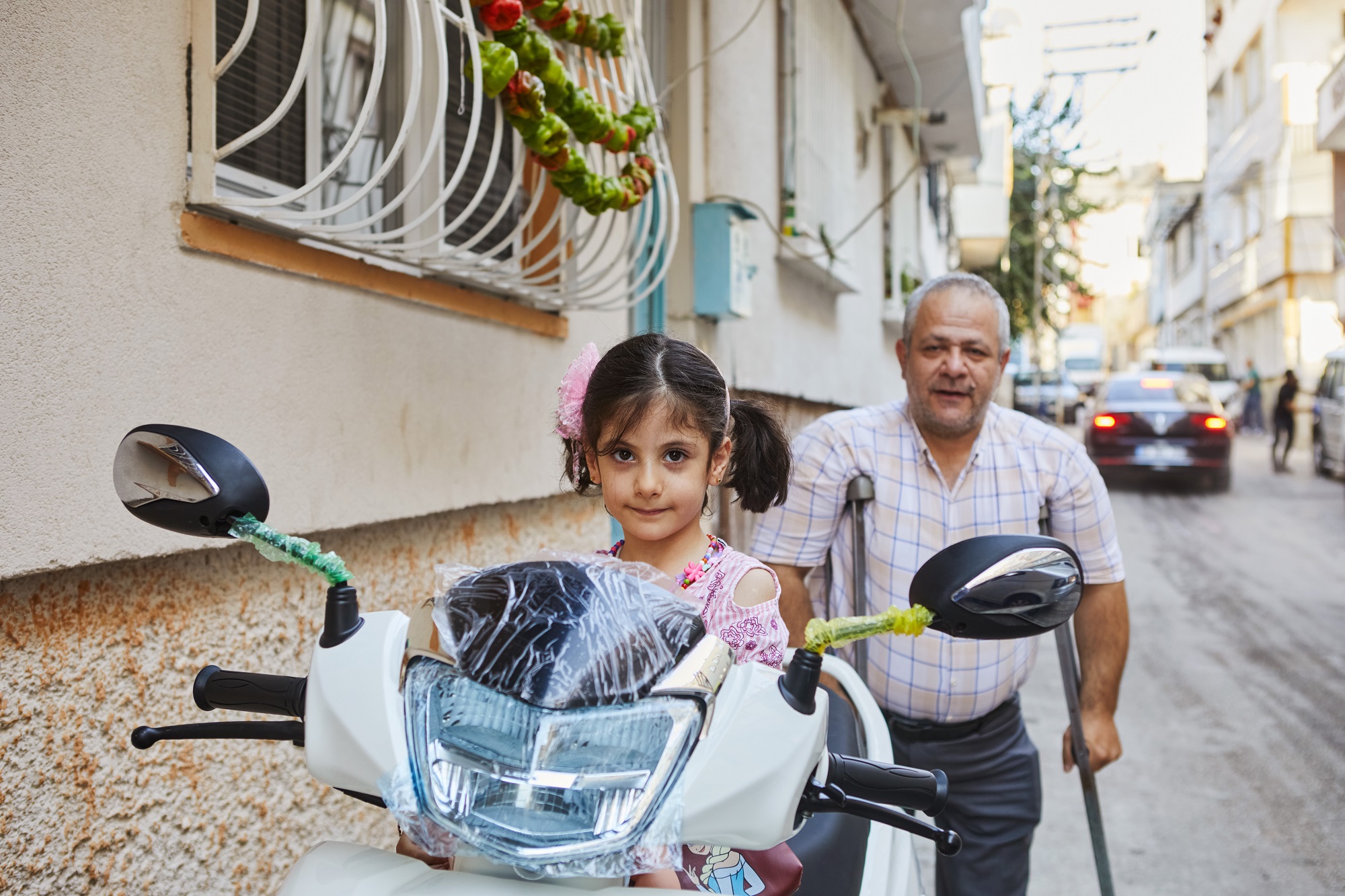 Beyazlar Mahallesi’nde bulunan Malak Ailesi’nin evinin önünden 4 Ağustos günü çalınan, kredi çekerek aldığı üç tekerlekli motosikletinin yenisini Gaziantep Büyükşehir Belediye Başkanı Fatma Şahin ve Gaziantep Valisi Kemal Çeber getirdi. 5 yaşındaki kızları Ecrin’in motor olmadığından evden dışarı çıkaramadıklarını, evin alışverişi, ihtiyacını karşılamak için önemli olan motorlarının yenisinin geldiğini gören aile, Başkan Şahin ve Vali Çeber’e teşekkür etti, evlerinde ağırladı.