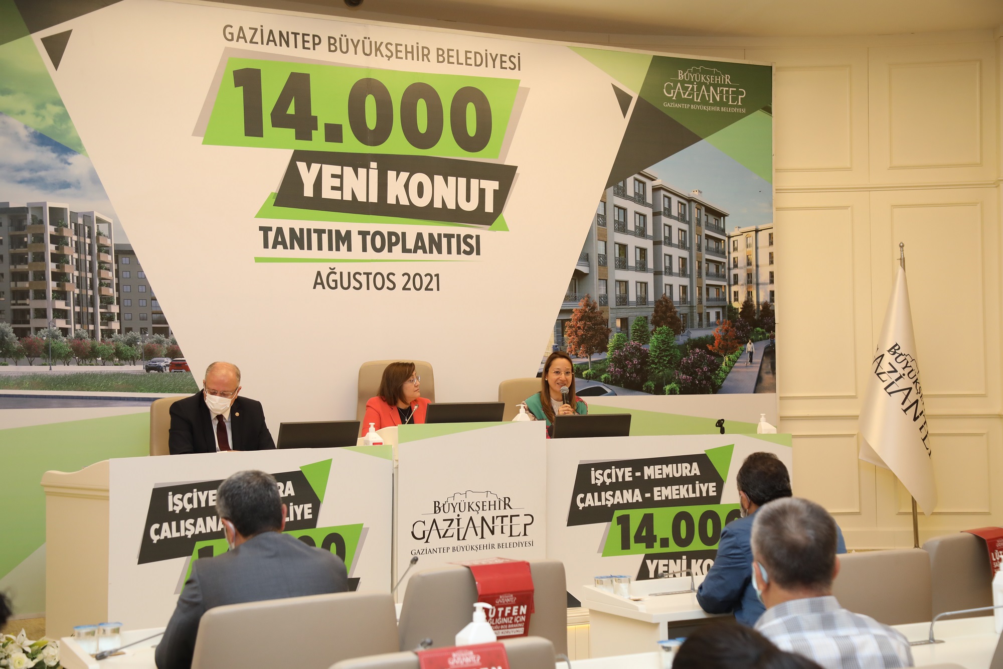 Gaziantep Büyükşehir Belediye Başkanı Fatma Şahin, “14 Bin Konut Projesi Toplantısı” nda Kuzeyşehir’de 10 bin 400, Güneyşehir 2 bin 850 ve Kızılhisar bölgesinde 750 adet yeni konut yapılacağını açıkladı. Kentsel tasarımının tamamlandığı projelerin ilk etabında 300 konut Kuzeyşehir’e ve Güneyşehir’e, 340 konut da Kızılhisar bölgesine inşa edilecek. Konutlar il genelindeki işçi, memur ya da emekli vatandaşların ödeme kolaylığı sağlanarak ev sahibi olmasının önü açılacak.