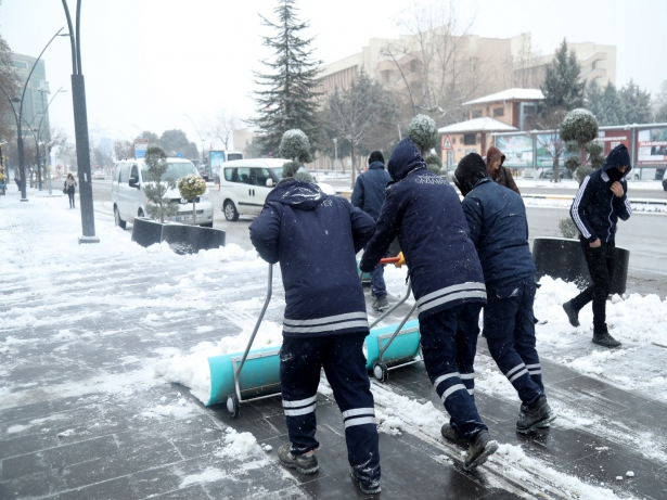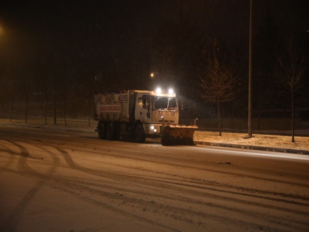 Çalışmada; 25 tuz robotu makinası, 15 greyder, 10 loder, 25 bekoloder, 17 kar küreme makinası, 45 kamyonet, 650 personel ve 6 bin ton tuz stoku ile kırsal mahallelerde ve şehir merkezinde 24 saati aşkın bir süredir ekiplerin mesaisi devam ediyor.