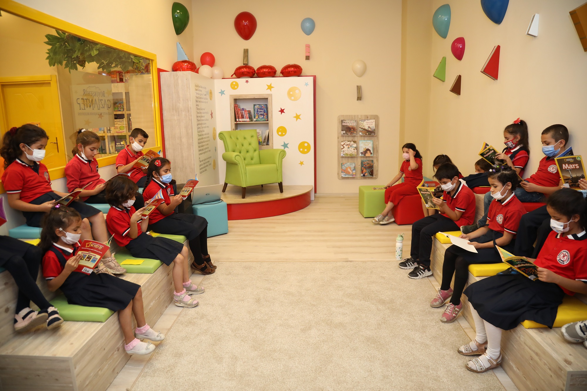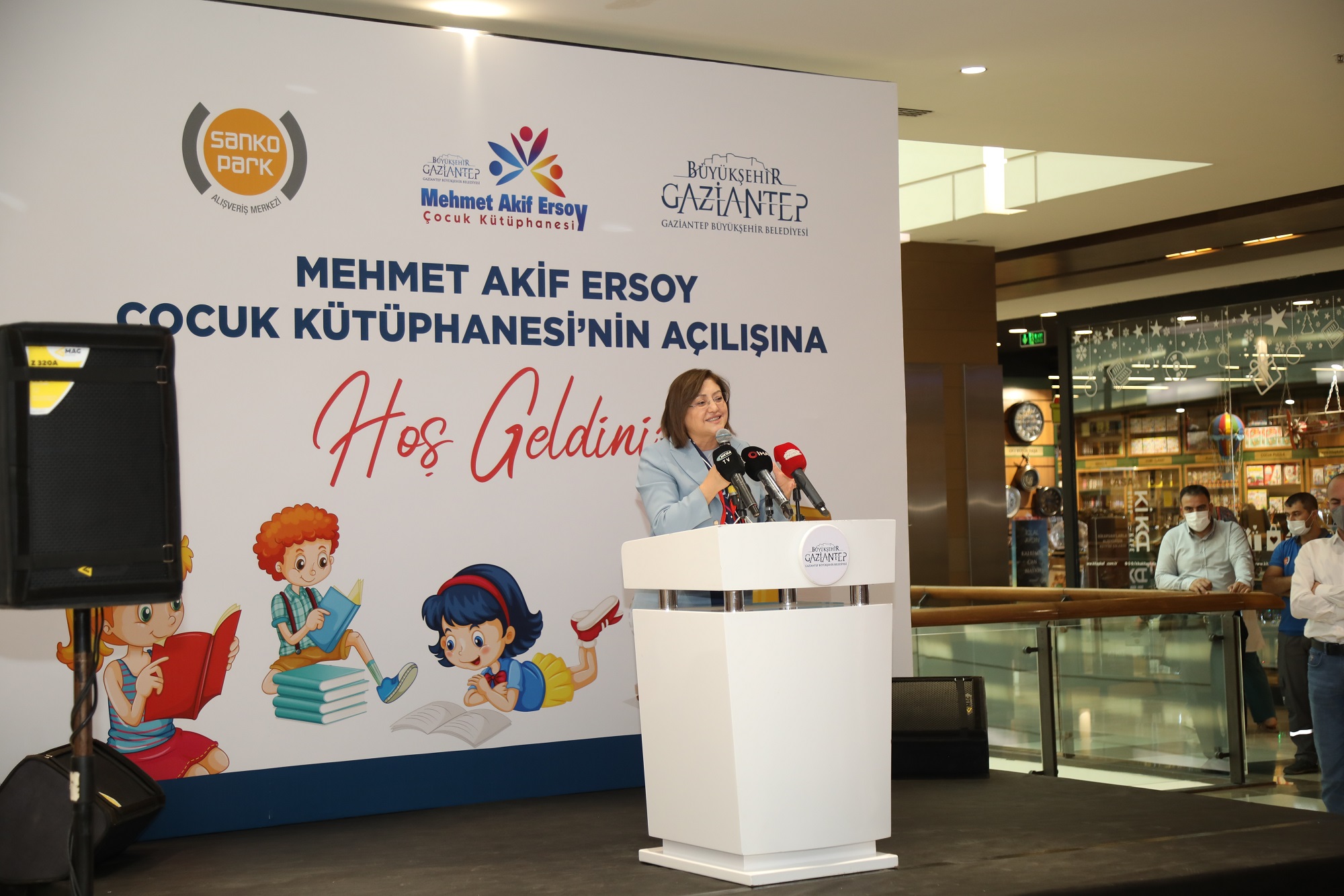 Gaziantep Büyükşehir Belediyesi tarafından Türkiye’de ilk kez bir AVM’de çocuk kütüphanesi açıldı. 12 bin kitabın okuyucuyla buluştuğu SANKO Park AVM Mehmet Akif Ersoy Çocuk Kütüphanesi, uzman kütüphanecilerce incelendi, tam not aldı. Başkan Fatma Şahin, AVM’de açılan çocuk kütüphanesiyle Türkiye’ye ve dünyaya örnek olduklarını söyledi.