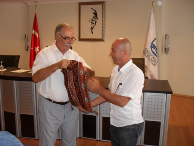 Başkan Ülgür Gökhan'ı makamında ziyaret eden Gaziantep Büyükşehir Belediyesi Halkoyunları Topluluğuna katılımlarından dolayı teşekkür eden Başkan Ülgür Gökhan, ekip liderine festival anısına plaket ve hediyeler verdi.
