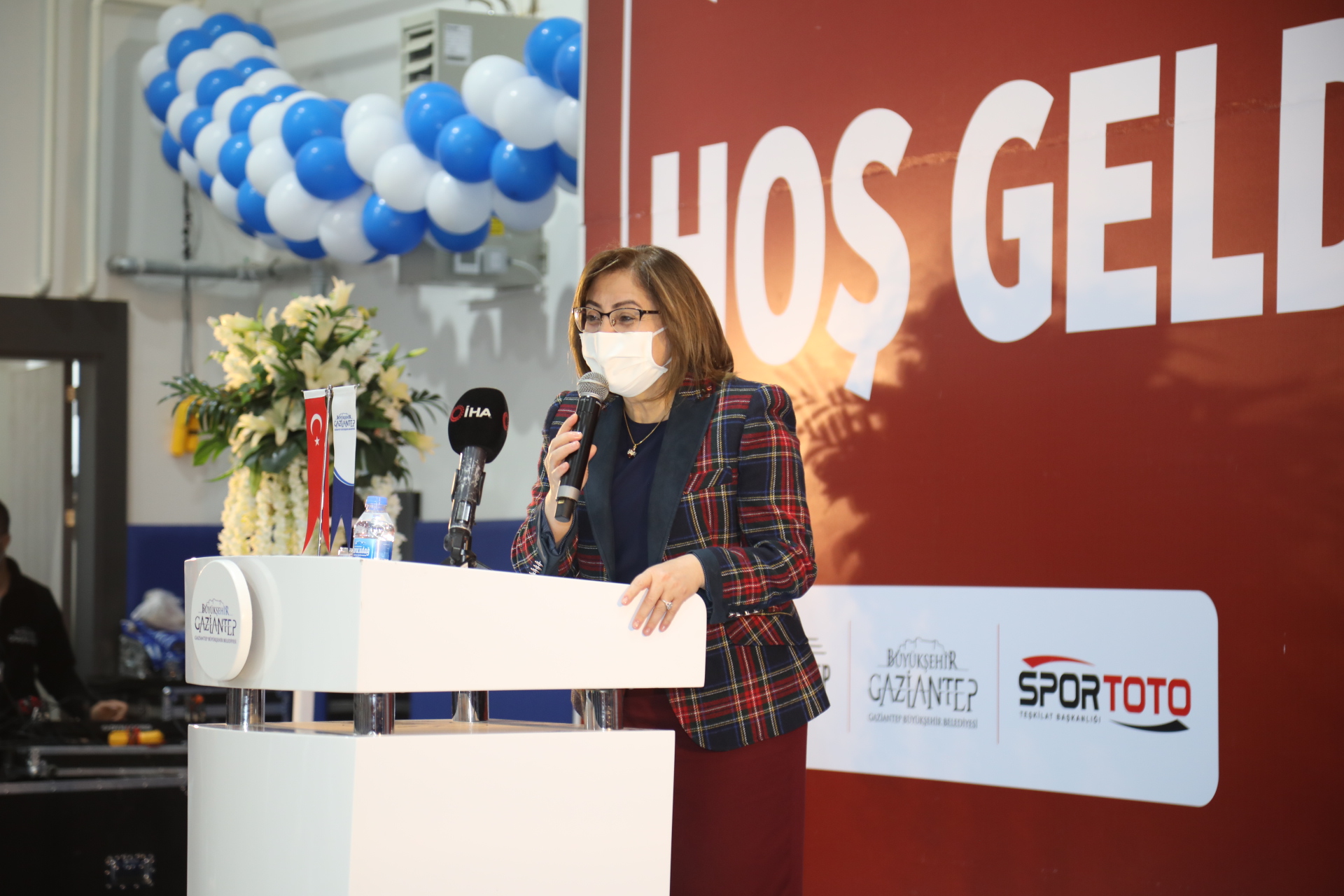 Açılış töreninde konuşan Büyükşehir Belediye Başkanı Fatma Şahin, “Ülkemizin en büyük en özel ilçesindeyiz. Bu eserler kendiliğinden olmuyor. Gençlik ve Spor Bakanımızı fahri hemşerimiz ilan ettik. Kendisinin şehre gelmesiyle beraber bu işler daha da hızlandı. Hakikaten en yüksek desteği aldık. Mustafa Kemal Atatürk ‘ Ben sporcunun zeki, çevik ve aynı zamanda ahlâklısını severim’ diyor. Çok önemli bir mesaj. Bugün baktığımızda Sayın Cumhurbaşkanımızın ‘Spor ne kazanma hırsı ne kaybetme korkusudur. Tek kelime ile özgüvendir’ diyor. ‘Yükselen Gaziantep’ dedik. Valimiz gelir gelmez iki şeye çok önem verdi. ‘Ben okuyorum Gaziantep Okuyor’ dedi ve çocuklarımızı fikren, bedenen ve ruhen geleceğe hazırlamamız gerek. İlk hadisi ‘Oku’ olan bir medeniyetten geliyoruz. ‘Hiç bilen ile bilmeyen bir olur mu?’ denilen bir medeniyetin taşıyıcılarıyız. Bu çocukların kemik yapısı, vücut yapısı hangi spora daha müsait mi diye, kabiliyetlerine göre ölçümler yapıyoruz. Bizde bu çocuklara fırsat eşitliği sağlamamız gerekiyor. Trabzon ve Ankara’da yapılan modellere baktık. Ayrıca çocuklarımızın taramalarını yaparak aileleri bilinçlendirerek onları yönlendiriyoruz. Bu mesele altyapı istiyor. 33 tesisle olağanüstü bir yatırım yaptık. ‘Yüzme bilmeyen kalmasın’ dedik. Bu çocuklar ellerinde al yıldızlı bayrağı taşıyarak İstiklal Marşımızı okutarak zaferden zafere koşacak” diye konuştu.