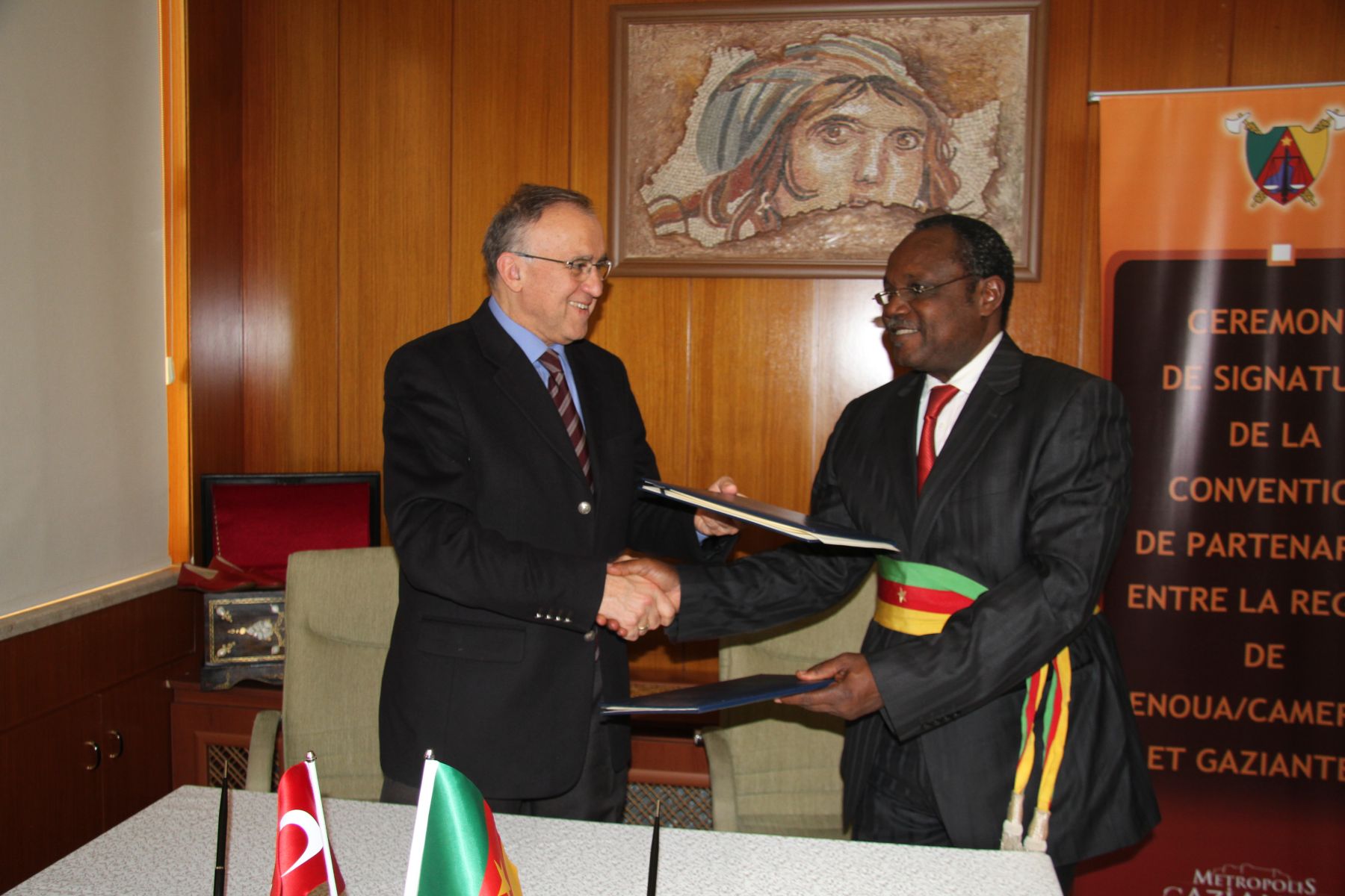Başkan Güzelbey’in makamında gerçekleşen imza töreninde Kamerunlu belediye başkanları Tsakem Danıel, Yougang Norbert, Ngueko Vıctor, Tsıaze Fozang arasında tek tek karşılıklı imzalar atıldı.