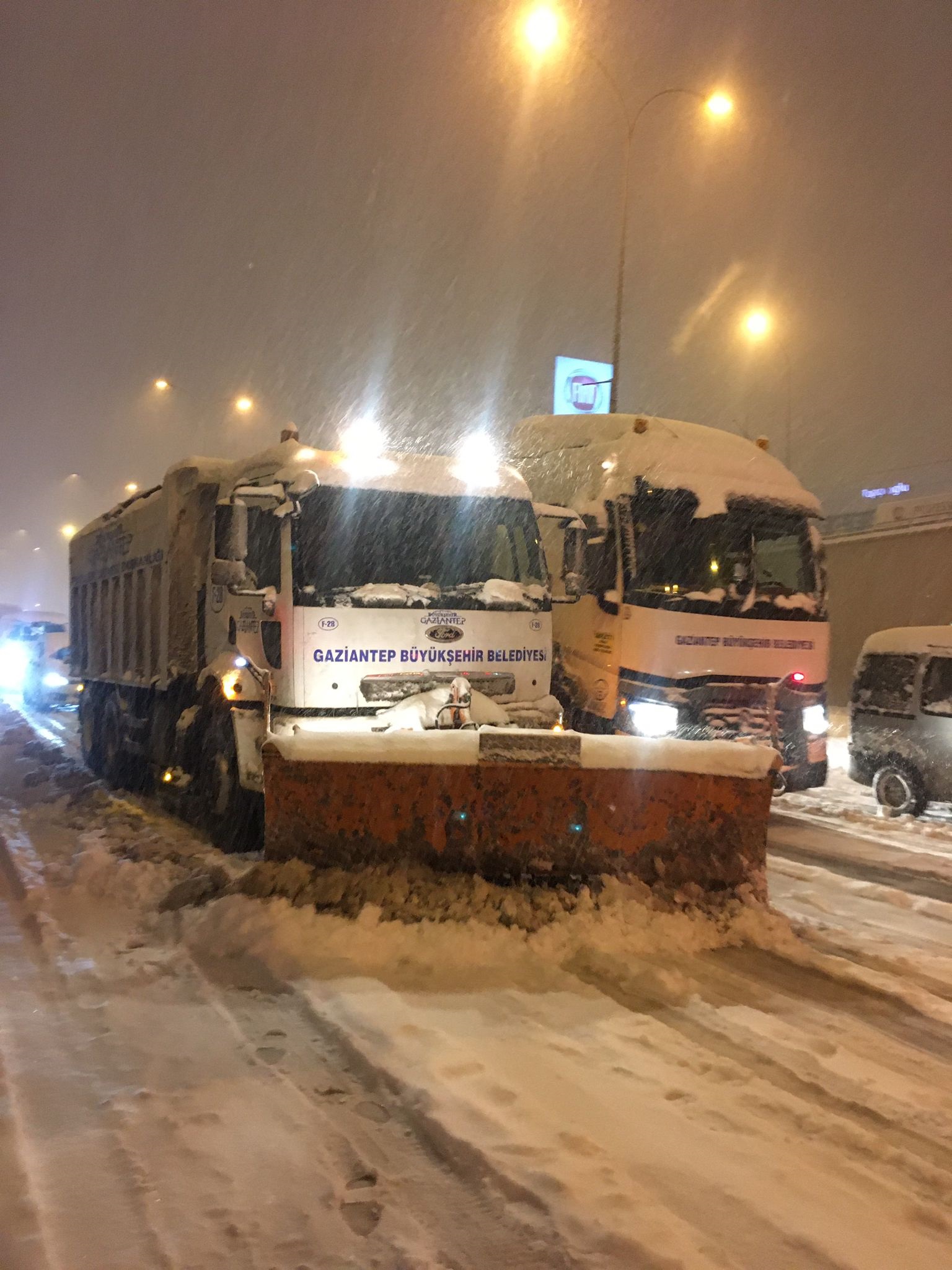 Gaziantep Büyükşehir Belediyesi karla mücadele ekipleri, şehirde kar yağışının etkisini göstermesiyle birlikte başta sorumluluk alanı olan ana arterler olmak üzere şehrin birçok yerinde çalışmalarını aralıksız sürdürdü. Gece boyu süren çalışmalar sonucunda ana arterlerin büyük çoğunluğu araç ulaşımına uygun hale getirildi.