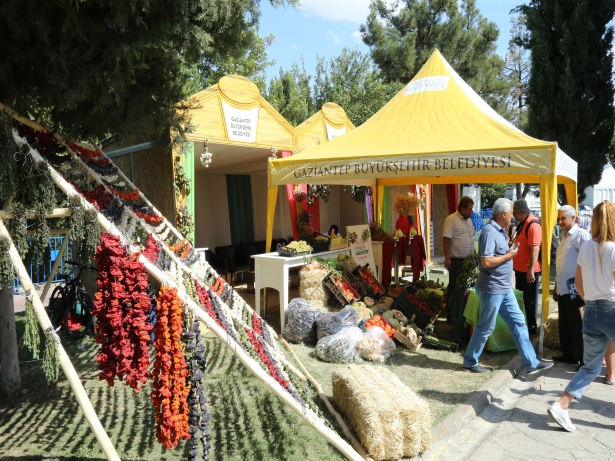 Gaziantep Valiliği koordinasyonunda Gaziantep Büyükşehir Belediyesi ve Gaziantep’i Geliştirme Vakfı’nın işbirliğinde düzenlenen 2’nci GastroANTEP Festivali kapsamında kurulan 200 stant arasında en fazla dikkati Büyükşehir Belediyesi Doğal Hayatı Koruma ve Tarımsal Hizmetler Daire Başkanlığı standı çekti. Festival boyunca sergilenen; Gazi şehrin verimli topraklarından yetişen ürünler, görenlerin ilgisiyle karşılaştı. Tamamen doğal ortamda kentin bereketli topraklarında yetiştirilen; haylan kabağı, sof domatesi, acur, çekirdekli karpuz, şeker pancarı, menengiç, nar, kurutmalık biberle patlıcan, karpuz, yer fıstığı gibi 25 adet ürünün sergilendiği stant, ziyaretçilerden tam not aldı. Tamamen yerli ve doğal ürünlerin bulunduğu, traktörleriyle, saman balyalarıyla köy hayatının oluşturulduğu stantta fotoğraf çektiren ziyaretçiler, her biri ortalama 800 gram ağırlığında olan Sof Domatesi görünce şaşkınlığını gizleyemedi.