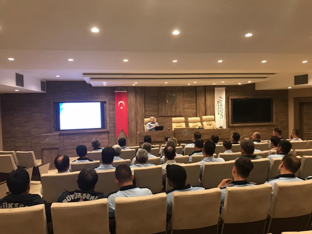 Büyükşehir Belediyesi Çetin Emeç Toplantı Salonu’nda gerçekleşen eğitimleri, İçişleri Bakanlığı Başkontrolörü ve Ankara İl Özel İdaresi Genel Sekreter Yardımcısı Recep Demir verdi. Zabıtaların ceza verme yetkisi, işyerlerini denetim ve yetkisi, imar, çevre, sağlık, trafikle ilgili görevleri, yardım çalışmaları, tutanak ve tebligat örnekleri gibi bilgiler paylaşıldı. Zabıta personellerinin verimliliğini arttırmayı amaçlayan eğitimde Recep Demir, sunum eşliğinde konu başlıklarını örneklerle anlattı.