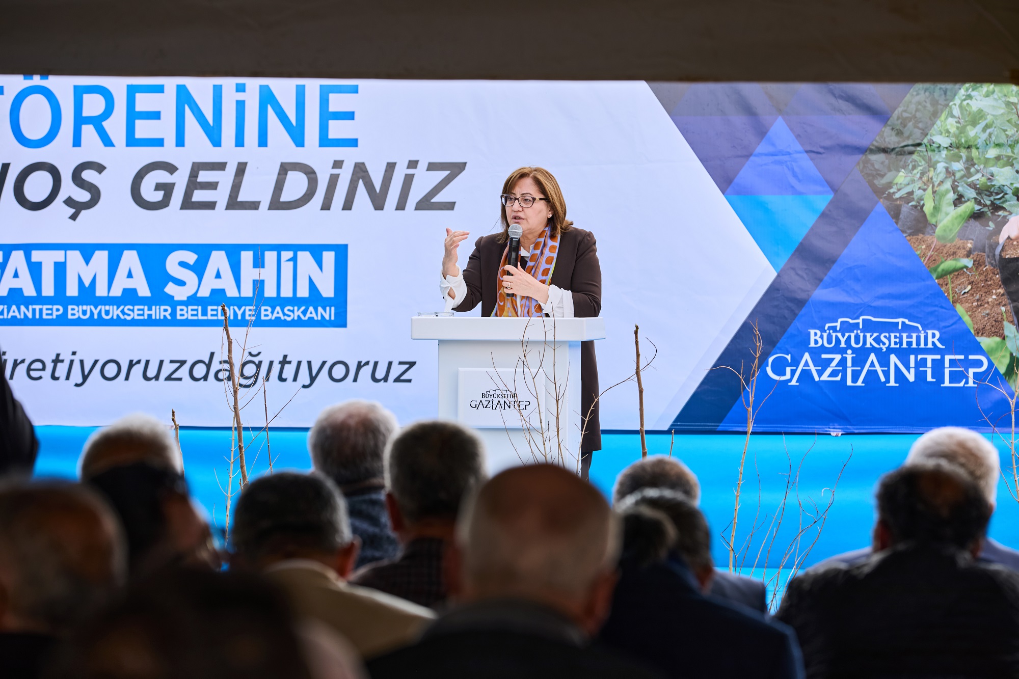 Tarımsal Eğitim ve Yöresel Ürünler İşleme Merkezi’nde 2023 yılında üretilen ve 2024 yılında dağıtıma hazır hale gelen 30 bin Antep fıstığı, bin incir, 10 bin bağ ve 6 bin nar fidanı dağıtım törenine Gaziantep Büyükşehir Belediye Başkanı Fatma Şahin katıldı.