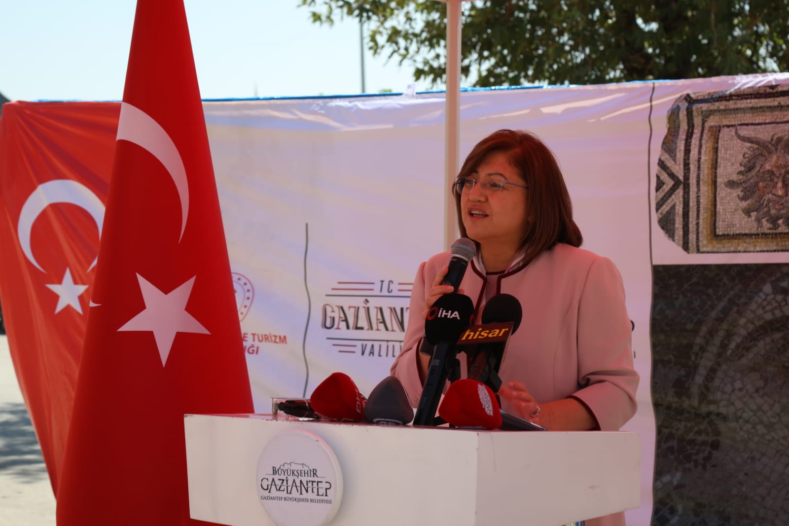 Gaziantep Büyükşehir Belediye Başkanı Fatma Şahin, uğurlama töreninde yaptığı konuşmada bugün bir tarihe tanıklık edildiğini söyleyerek, “Anadolu coğrafyası büyük bir medeniyettir. Anadolu coğrafyasında insanlık tarihi kadar eski, Hitit, Roma, Selçuklu, Osmanlı, Cumhuriyet Dönemi’nin en güzel eserleri vardır. Anadolu coğrafyası açık hava müzesidir. Kültürel miras artık yükselen bir değerdir. Artık altının, petrolün, doğalgazın zenginliğin ölçütü olduğu dönem bitti. Artık ne kadar kültürel mirasın, yetişmiş insan gücün üzerinden zenginliğin olduğu bir dünya düzenine hep birlikte tanıklık oluyoruz. Gaziantep olarak bu büyük medeniyetlerin köprüsüyüz, taşıyıcılarıyız. Tarihin sıfır noktasından, 5 antik kenti, bu güzel eserleri hep beraber dünyaya tanıtmak açısından büyük bir gayret gösteriyoruz. Gaziantep coğrafyasına baktığımızda büyük bir bereketli hilalin ortasındayız. Topraktan, güneşten gelen bu medeniyeti biz de torunlarımıza taşıma için büyük bir gayret gösteriyoruz” ifadelerini kullandı.