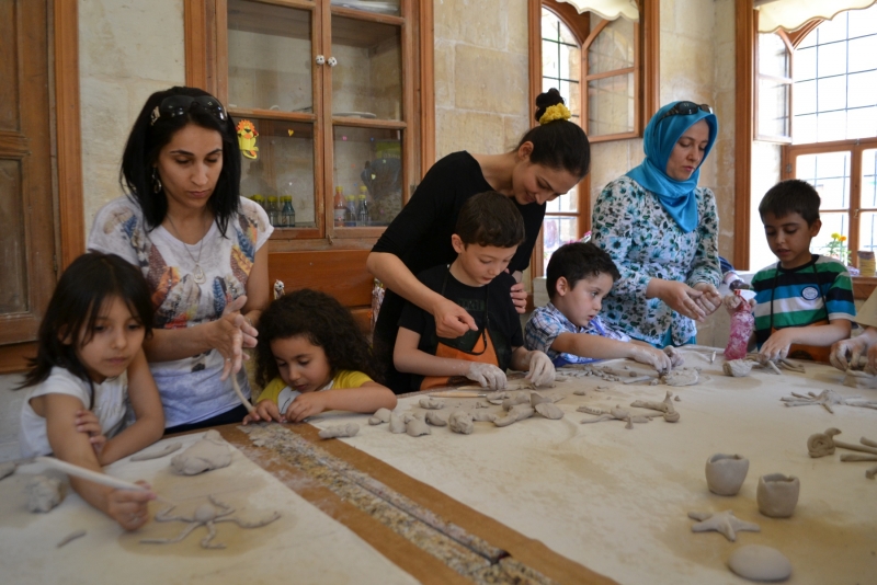 6-16 yaş gruplarında çocukları sanatla buluşturan merkezde, çocuklar el sanatları, mozaik ve seramik atölyelerine Anneleri ile birlikte katıldılar. Bugüne kadar çocuklarını atölyelere bırakıp çıkan Anneler, bu kez sınıfları birlikte doldurdular. Çocukları ile birlikte seramik ve mozaik yapmanın tadını çıkardılar.