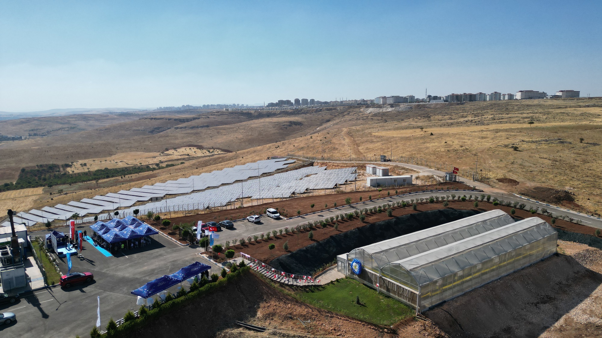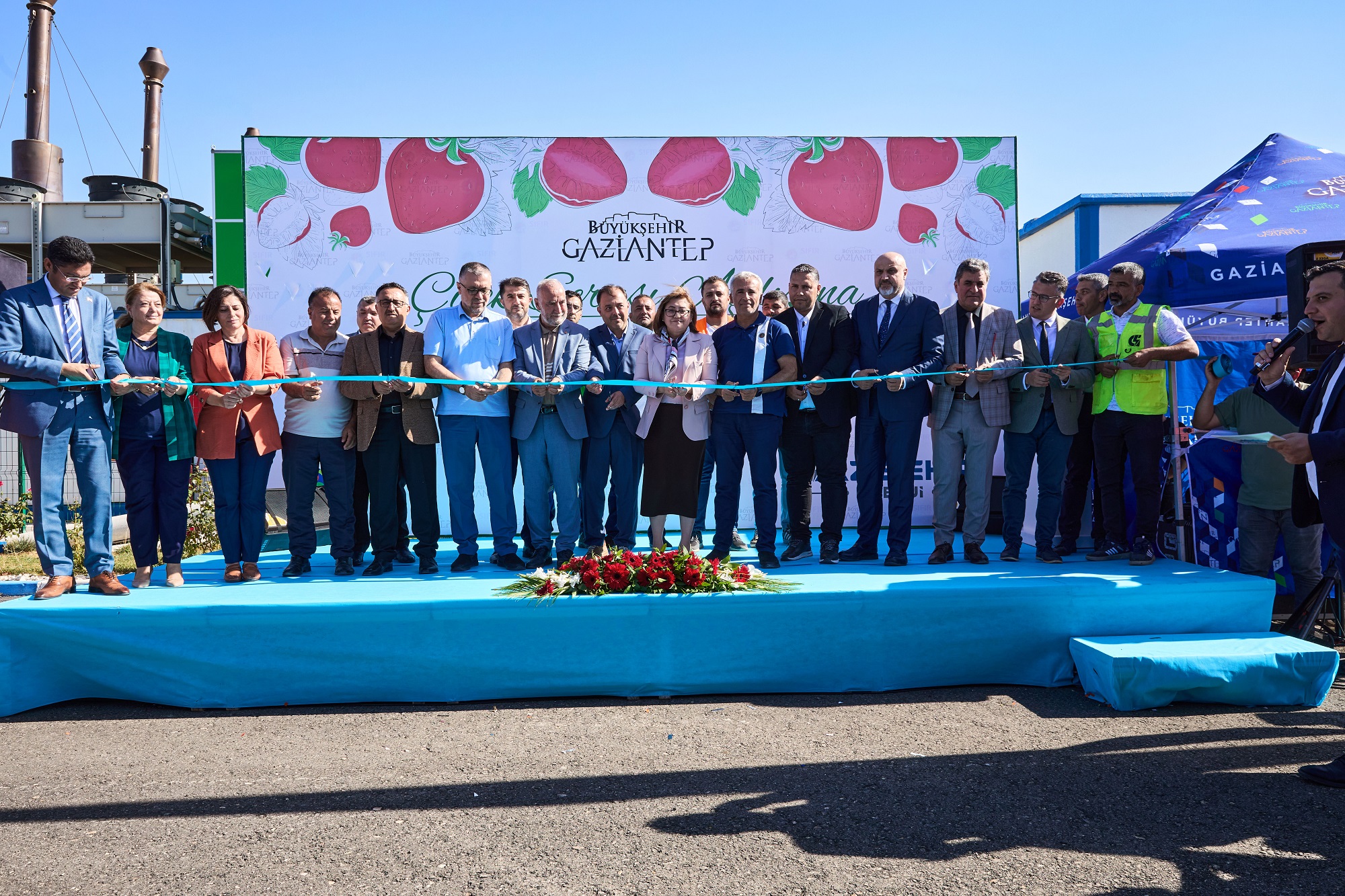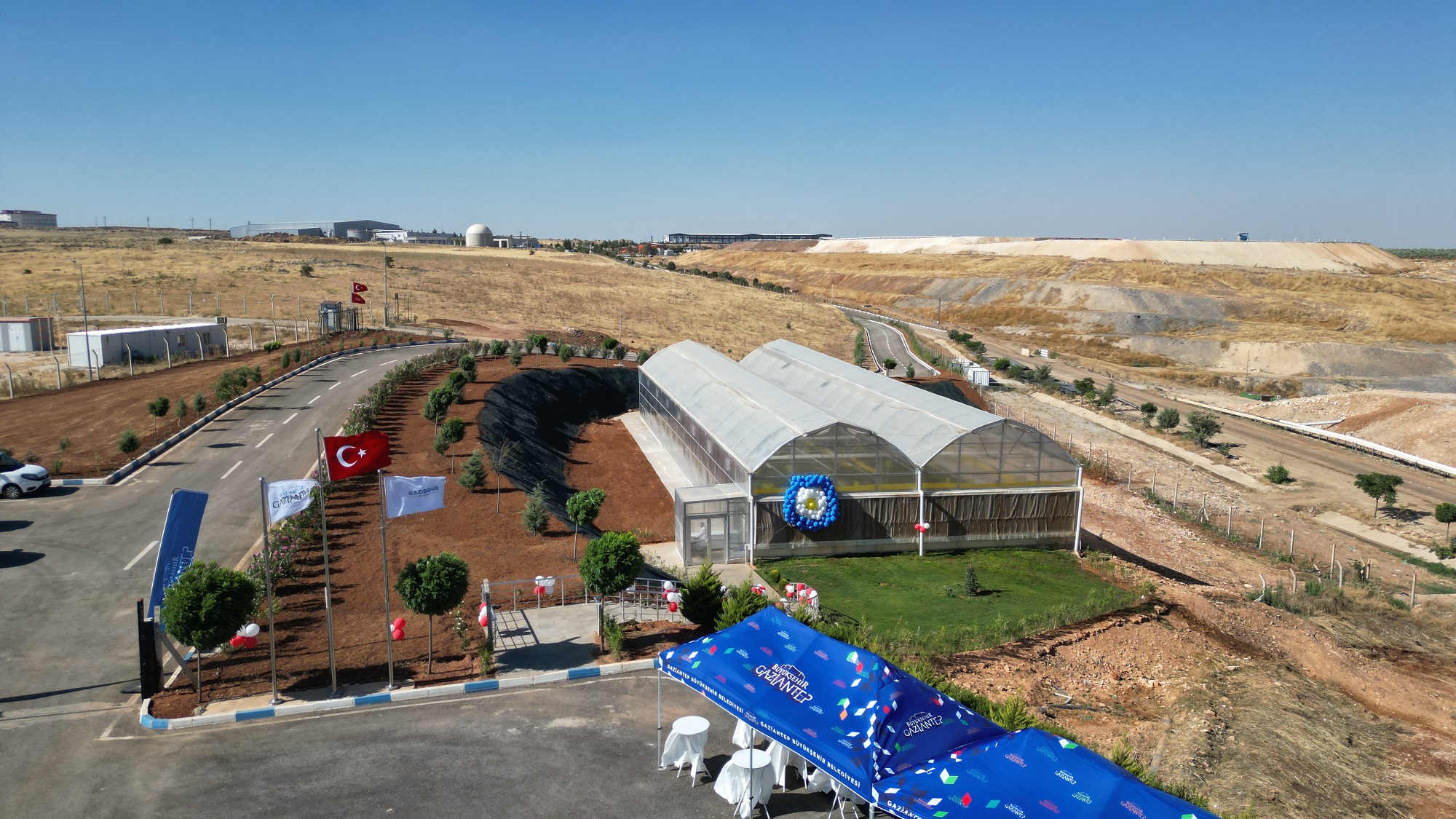 Gaziantep Büyükşehir Belediyesi tarafından yapımı tamamlanan, Merkez Katı Atık Düzenli Depolama Sahası’nda üretilen elektrikle ısınan ve topraksız tarım tekniği kullanılarak çilek yetiştirilen seranın resmi açılışı ile birlikte ilk hasadı da yapıldı.