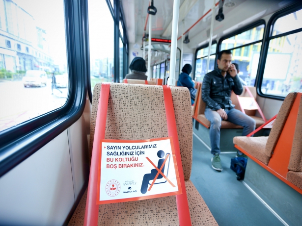 Çin Halk Cumhuriyeti’nin Vuhan kentinde ortaya çıkan, kısa sürede Dünya Sağlık Örgütü (WHO) tarafından bölgesel olmaktan çıkarak “pandemi” yani küresel anlamda etkisini gösteren bir salgın haline geldiğini ilan ettiği Corona Virüs Salgını’na karşı ulusal mücadele devam ediyor. Salgına karşı alınan tedbirler kapsamında İçişleri Bakanlığı tarafından yayınlanan genelgede değinilen “toplu taşımalarda araç içindeki yolcuların oturma şekli yolcuların birbirleriyle temasını engelleyecek şekilde olması” gerektiğinin belirtilmesinden sonra Büyükşehir örnek bir uygulama başlattı. Tramvay ve bünyesinde bulundurduğu otobüsler başta olmak üzere bütün toplu taşıma araçlarına yönelik “Sosyal Mesafe Şeritleri” çekilmeye başlandı. Corona Virüsü’nün bulaşıcılığını engellemek için önemli bir tedbir olan sosyal mesafenin korunması için yapılan çalışma, toplu taşımalarda koruyucu bir ulaşım sağlayacak. İlerleyen günlerde mavi ve sarı özel halk otobüslerine yönelik şerit çalışmaları tamamlanacak.