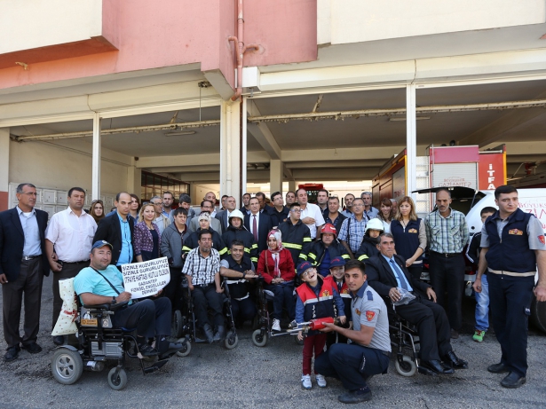 Büyükşehir Belediyesi İtfaiye Daire Başkanlığında gerçekleştirilen etkinlikte yaklaşık 85 engelliye, yangın söndürme teknikleri anlatıldı. İtfaiye Daire Başkanı Eğitim Amiri Fuat Yılmaz, engellilere yangının nasıl söndürüleceğini anlatarak, teşkilatın çalışmaları hakkında bilgi verdi.