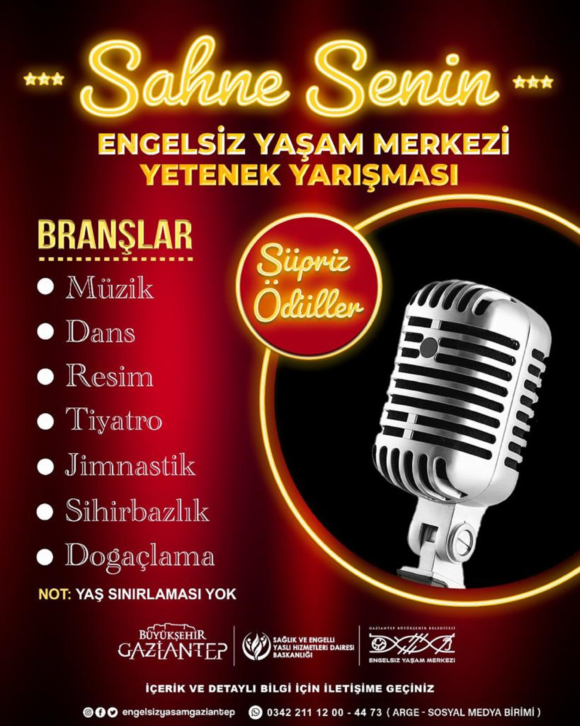 Gaziantep Büyükşehir Belediyesi’ne bağlı Engelsiz Yaşam Merkezi’ndeki danışanlara özel farklı kategorilerde yetenek yarışması düzenlenecek.