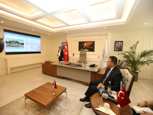 Başkan Fatma Şahin daha sonra Başbakan Ratas’a Gaziantep ve mülteciler ile ilgili bir sunum yaptı.