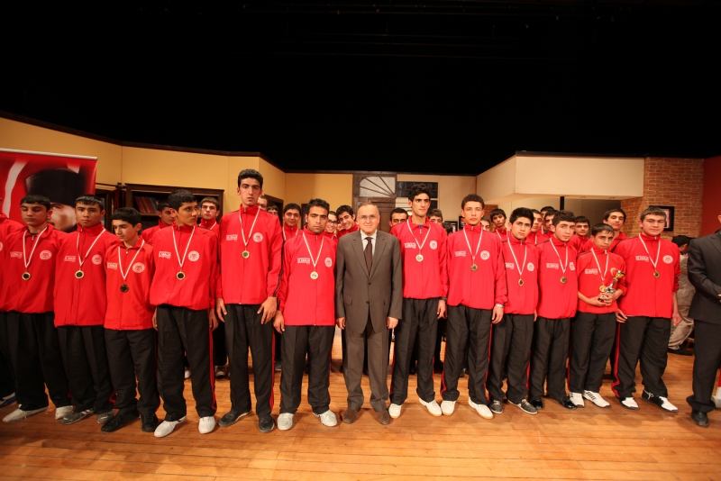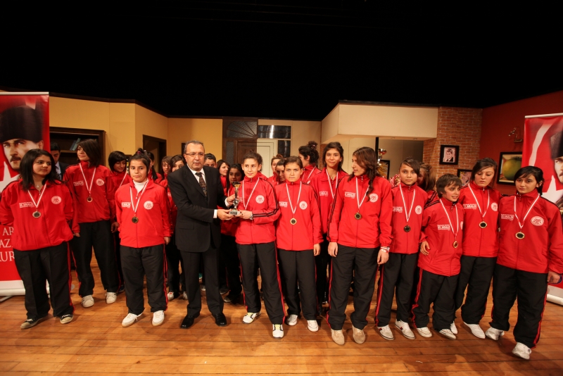 Konuşmaların ardından Başkan Güzelbey, Vali Yardımcıları Nihat Kaynar, İbrahim Yurdakul, Kaymakam Mehmet Aydın ve diğer protokol üyeleri Kurtuluş Kupası etkinliklerinde dereceye giren öğrencilere kupa ile madalyalarını verdi.