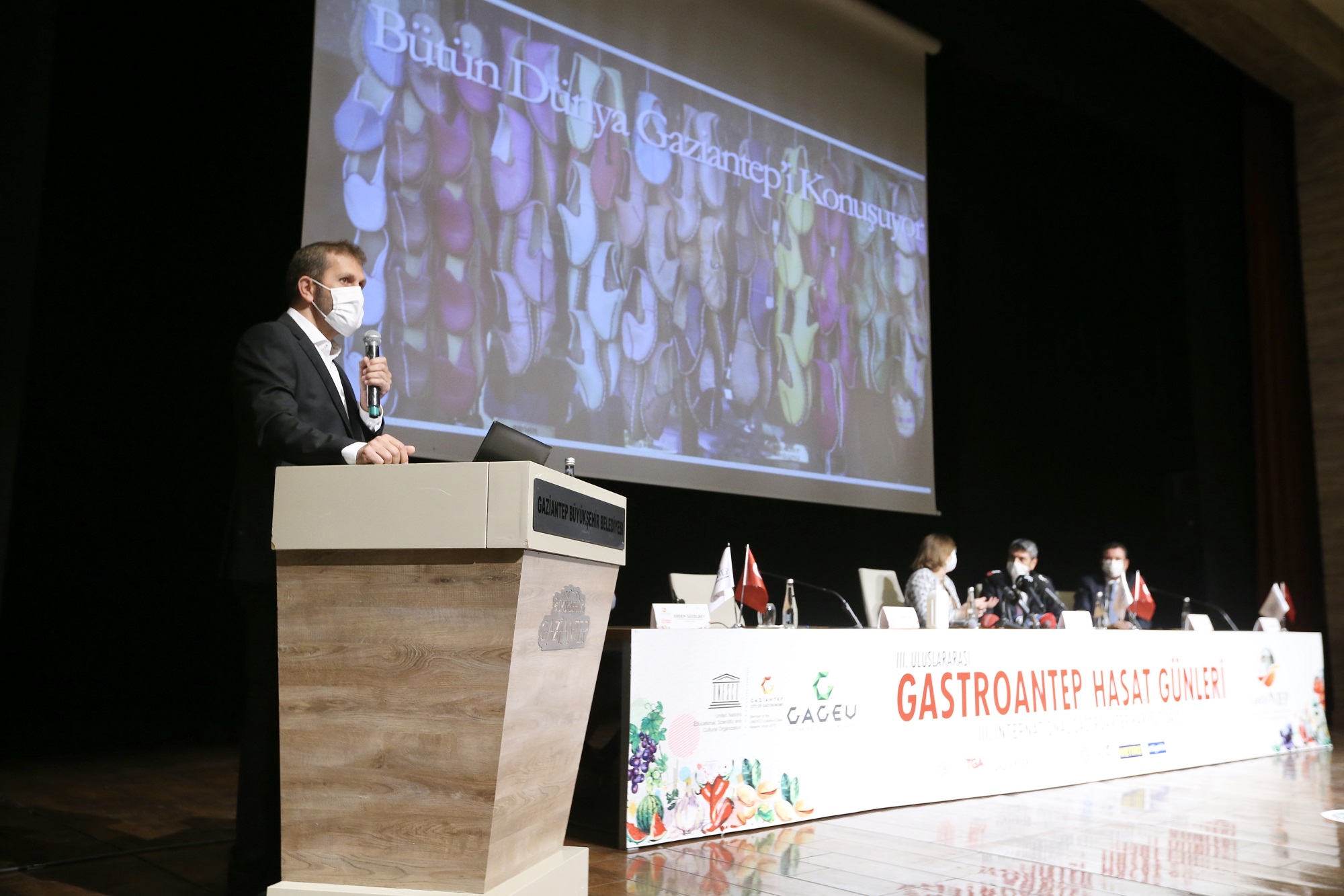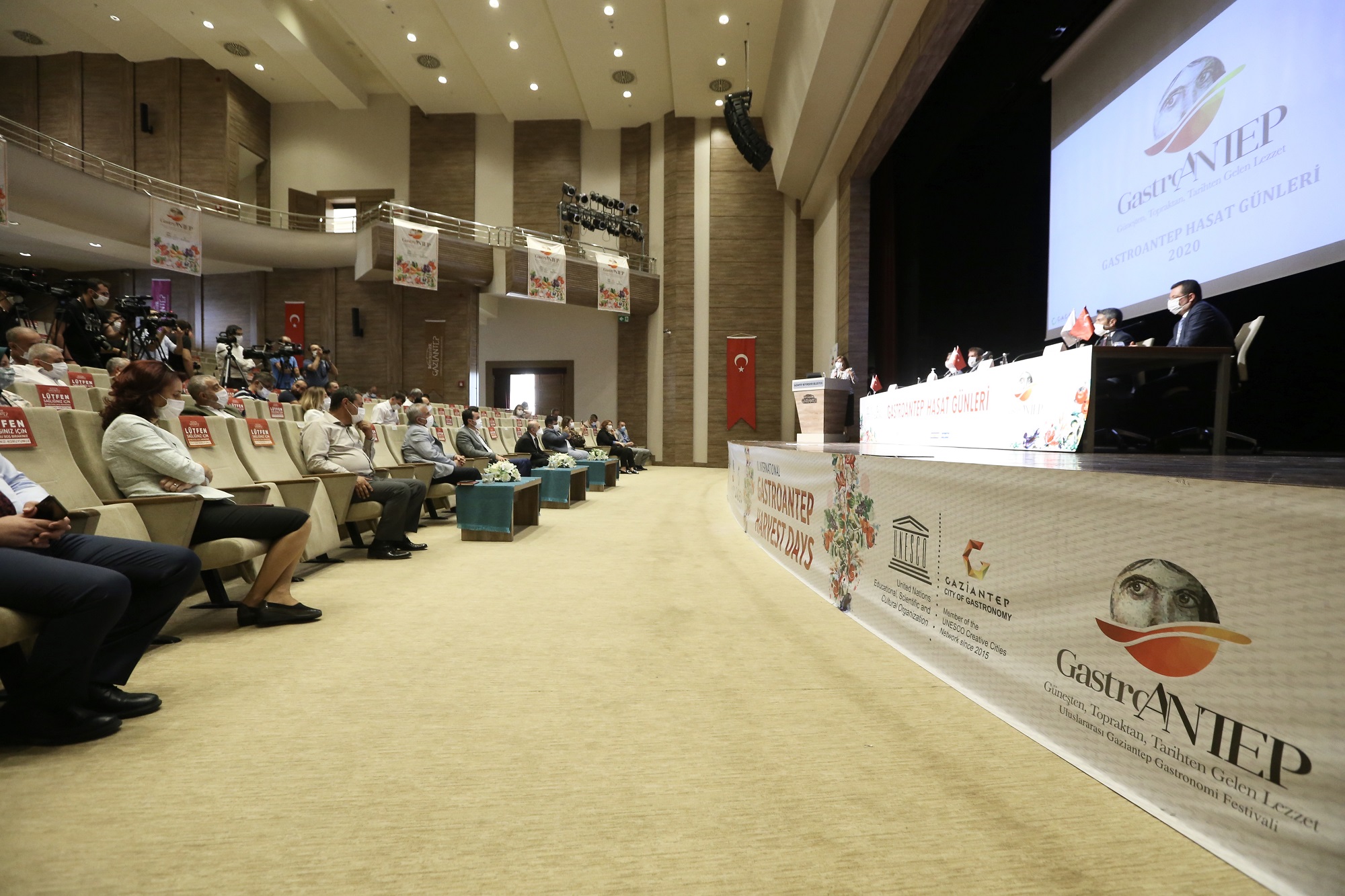 Birleşmiş Milletler Eğitim, Bilim ve Kültür Örgütü’nün (UNESCO) 116 şehir arasında gastronomi alanında Yaratıcı Şehirler Ağı’nda (UCCN) Türkiye’yi temsil eden ilk şehir olan Gaziantep, dünyanın en önemli gastronomi merkezlerinden biri olma hedefiyle Uluslararası GastroAntep Festivali’nin bu yıl üçüncüsünü ‘GastroAntep Hasat Günleri’ olarak düzenliyor. Hasat günlerinin tanıtım toplantısı basın mensuplarının katılımıyla Büyükşehir Konferans Salonu’nda gerçekleşti. Gaziantep Büyükşehir Belediye Başkanı Fatma Şahin, Şehitkamil Belediyesi Başkan Yardımcısı Murat Özgüler, İpekyolu Kalkınma Ajansı Genel Sekreteri Dr. Burhan Akyılmaz’ın katıldığı tanıtım toplantısında GastroAntep’in geçmiş yıllara göre bölge ekonomisine katkısı, Gaziantep Mutfağı’nın tanıtımı ve şehre etkisi konuşuldu, basın mensuplarının soruları yanıtlandı.