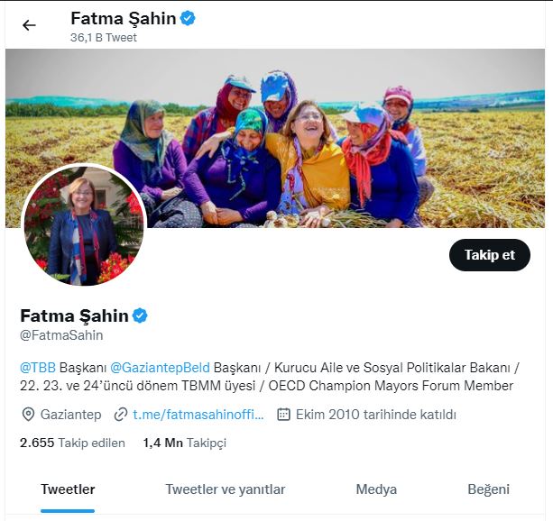 Kasım ayı Büyükşehir Belediye Başkanları Sosyal Medya Analiz Raporu’na göre ise Gaziantep Büyükşehir Belediye Başkanı Fatma Şahin’in Twitter, Instagram ve Facebook sosyal medya hesapları İstanbul Büyükşehir Belediye Başkan Ekrem İmamoğlu ve Ankara Büyükşehir Belediye Başkanı Mansur Yavaş’ın ardından toplamda 2 milyon 897 bin 398 etkileşim alarak 3’üncü oldu.