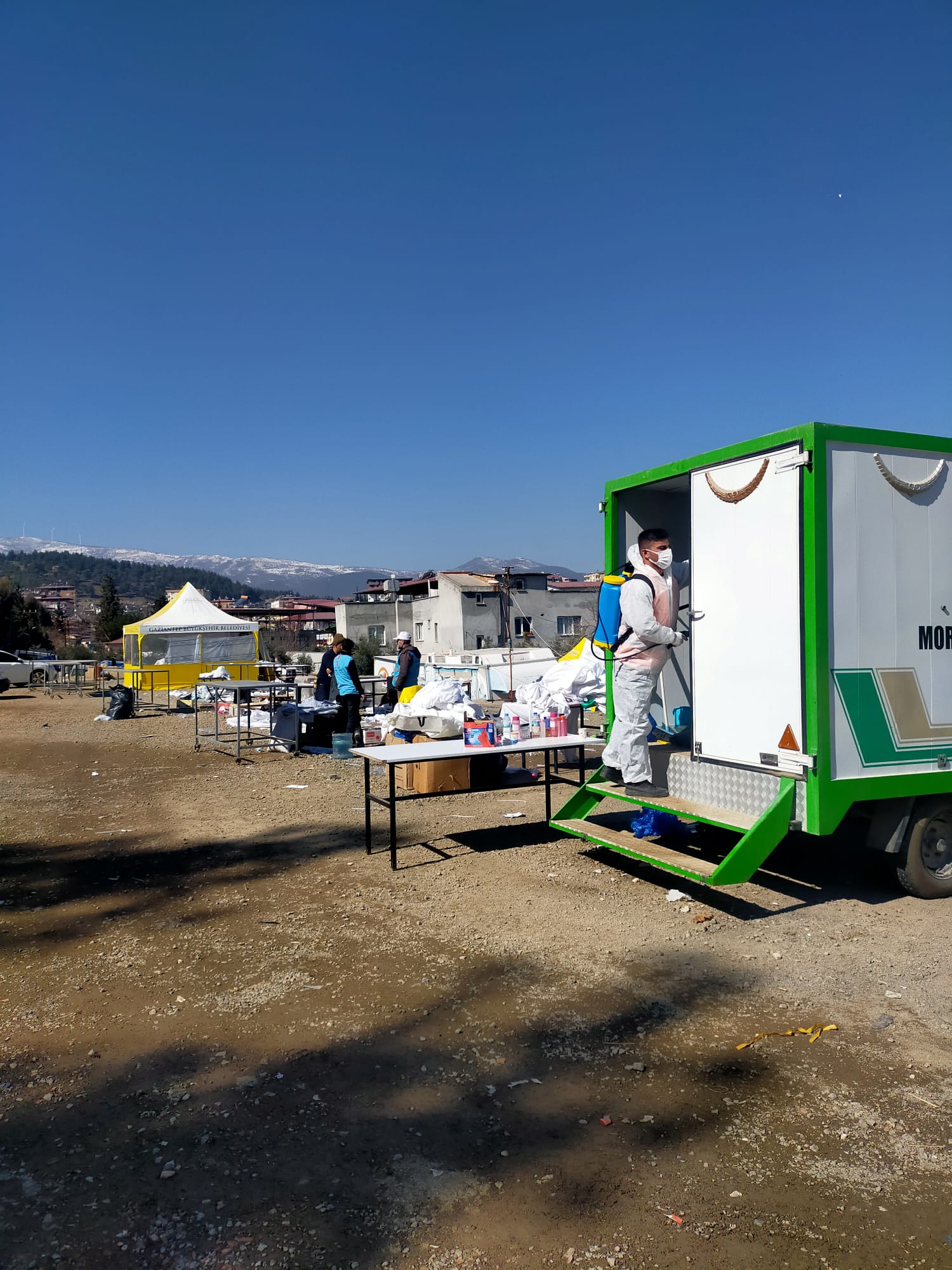 Büyükşehir Belediyesi Sağlık ve Engelli Yaşlı Hizmetleri Daire Başkanlığı’na bağlı Haşere ile Mücadele ve İlaçlama Hizmetleri Şube Müdürlüğü ekipleri, Kahramanmaraş Pazarcık merkezli yaşanan deprem sonrası olası salgın hastalıkların depremzedelere bulaşmaması için şehir merkezi başta olmak üzere Nurdağı ve İslahiye ilçelerinde ilaçlama çalışması yürütüyor.