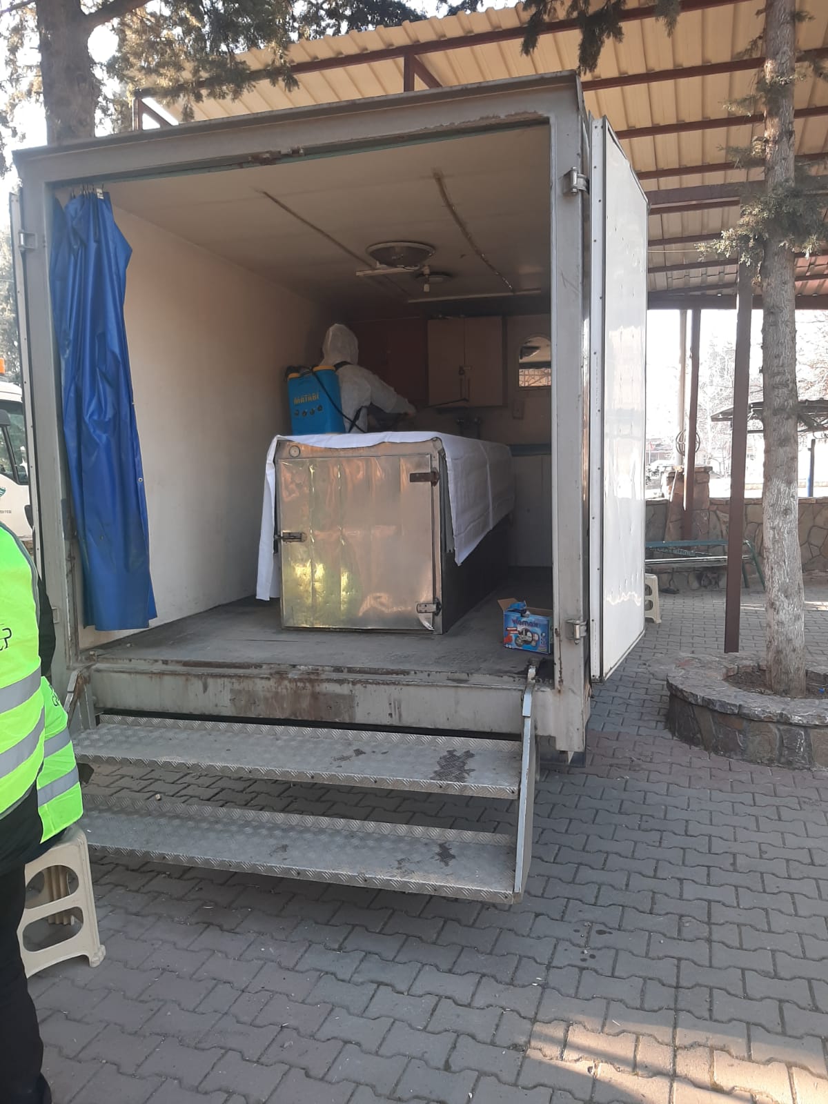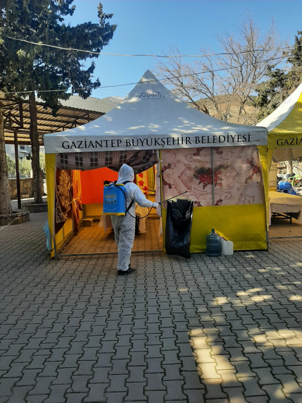Büyükşehir’e bağlı 30 uzman personelin görev aldığı ilaçlama çalışmalarında toplu yaşam alanlarından; sosyal tesisler, çadırkentler, petrol istasyonları, taziye evleri, tuvaletler ve ortak kullanım alanlarının tamamı dezenfekte edilirken çadırkentlerin belirli aralıklarla ilaçlaması yapılıyor.