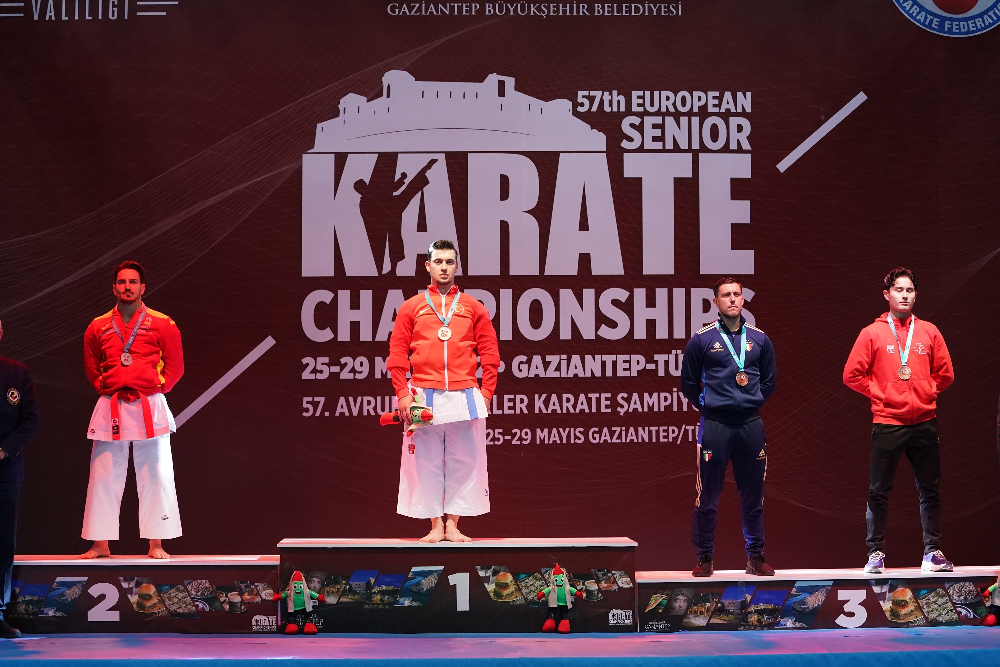 Gaziantep’te düzenlenen 57. Avrupa Büyükler Karate Şampiyonası'nı, Karate Milli Takımı rekor başarıyla bitirdi. 46 ülkeden 510 sporcunun katılımıyla Şahinbey Kapalı Spor Salonu’nda gerçekleştirilen şampiyonada milli sporcular; Erman Eltemur, Burak Uygur, Eray Şamdan ve Ali Sofuoğlu müsabakalarda sergiledikleri performansla altın madalya kazanırken kadınlarda ise Eda Eltemur ve Serap Özçelik altın madalya, Dilara Bozan ise ikincilik elde ederek gümüş madalya aldı.