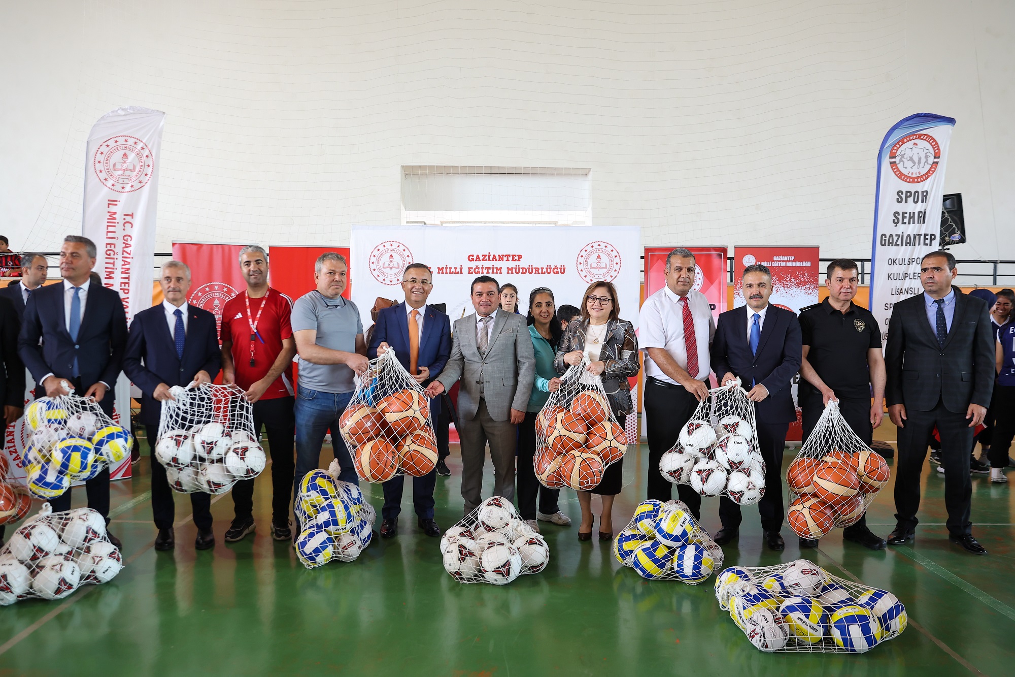 Yeni destekler kapsamında Gülşen Batar Anadolu Lisesi’nde düzenlenen törenle 7 bin 500 futbol topu, 7 bin 500 voleybol topu, 5 bin basketbol topu, bin hentbol topu ve 14 bin 500 adet masa tenisi malzemesi okullara dağıtıldı. Törene Gaziantep Büyükşehir Belediye Başkanı Fatma Şahin, Gaziantep Valisi Kemal Çeber ve Şahinbey Belediye Başkanı Mehmet Tahmazoğlu katıldı.