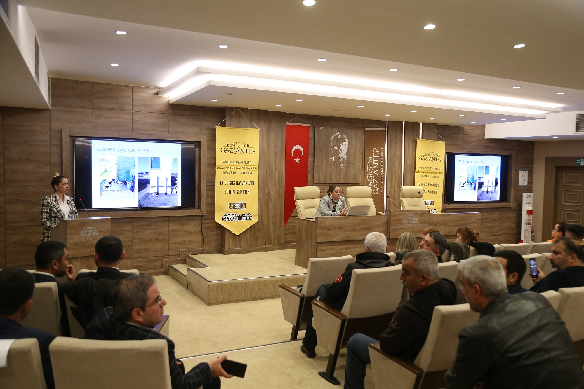 Büyükşehir Belediyesi Çetin Emeç Salonu’nda yapılan yaklaşık 100 kişinin katıldığı seminerde Büyükşehir Belediyesi Doğal Hayatı Koruma ve Hayvanat Bahçesi veteriner hekimleri, biyologları, ziraat mühendisleri zooteknistleri kendi alanlarındaki başlıklarda eğitimler verdi.