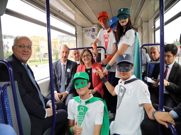 Çalıştay sonunda protokol, erişilebilir yolcu taşıma hizmetleri deneyimini tramvayda yaşamak için engelli ve yaşlılardan oluşan bir grup yolcuyla tramvay seyahatı yaptı.