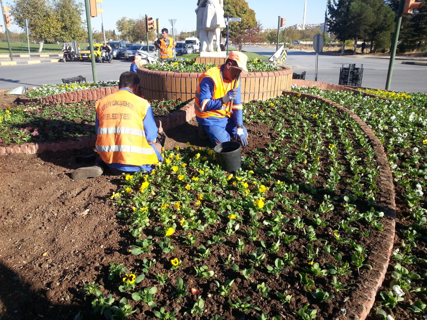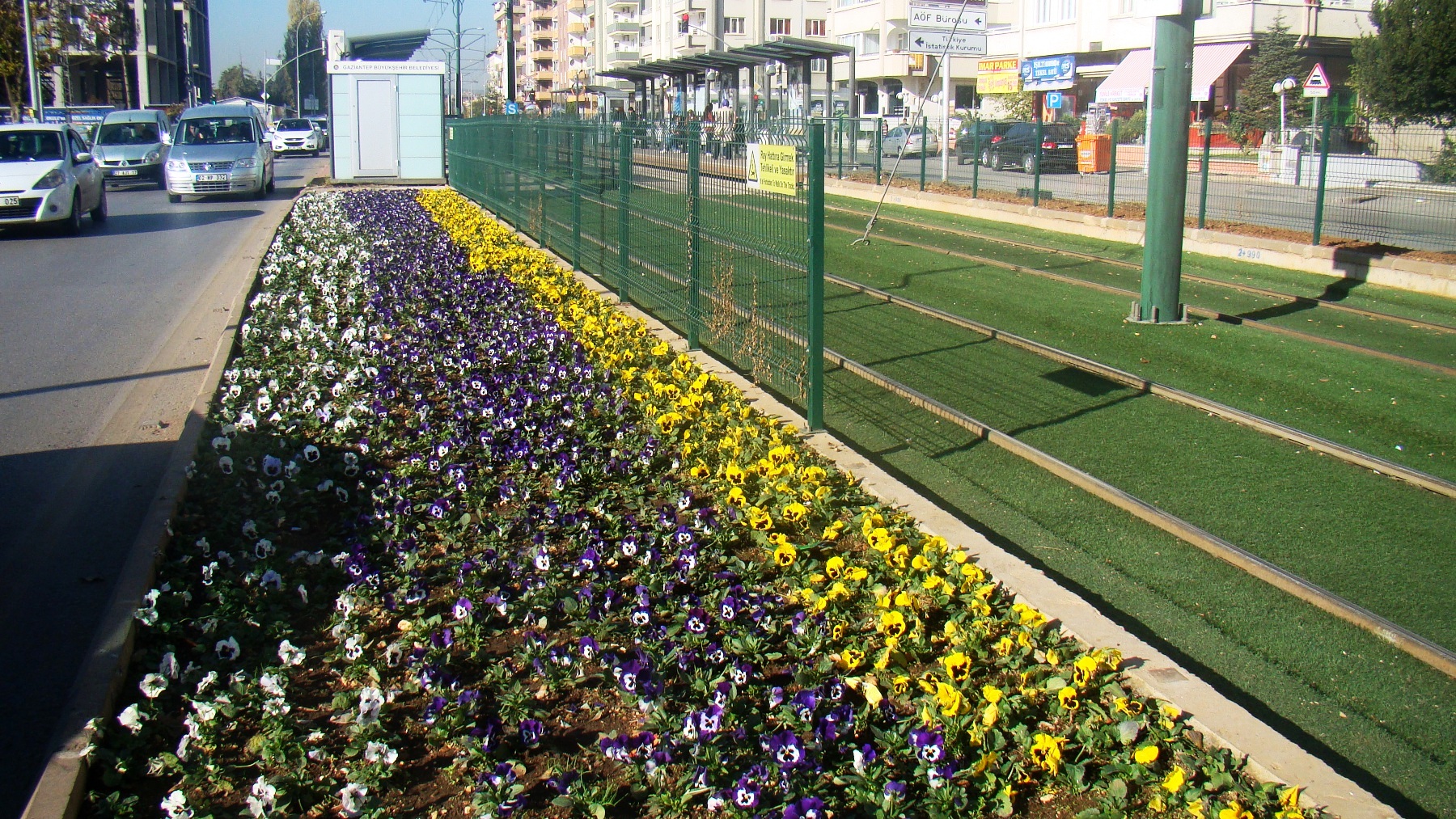 Hafif Raylı Sistem güzergâhını ve ana arter refüjlerini estetik bir görünüme kavuşturmak için de çalıştıklarını ifade eden Ersin Özbadem, “Hafif raylı sistem güzergâhında, kavşak geçiş noktalarında oluşturduğumuz yaya geçitleri ile ışıklandırma sistemlerinin olduğu alanlarda değişik geometrik tasarımlar gerçekleştiriyoruz. Karataş ve Burç Kavşağından başlayıp İstasyon Meydanına kadar uzanan raylı sistem güzergâhı üzerinde ve kavşak geçiş noktalarında kış dönemi mevsimlik çiçek dikim çalışmaları yapıyoruz. Raylı sistem duraklarının yer aldığı alanlar ve güzergâh üzerinde yapılan çiçeklendirme çalışmaları ile oluşturulan alanlarda kentin estetiğine ayrı bir hava katmayı amaçlıyoruz. Yürüttüğümüz çalışmalar çerçevesinde, kış mevsimine özgü çok sayıda çiçek ve bitki türü kullandık” açıklamasında bulundu.