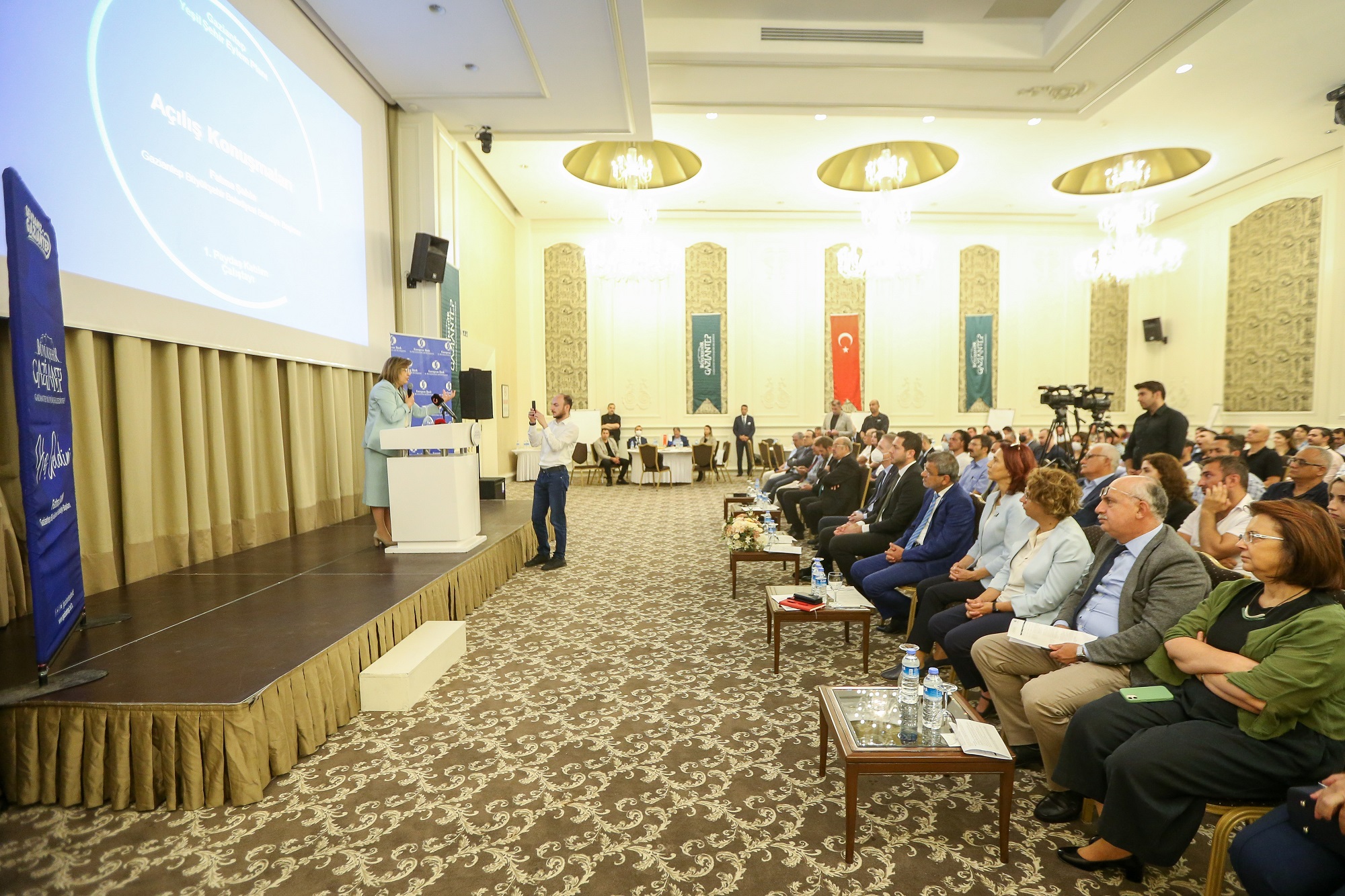Açılış konuşmalarının ardından Başkan Fatma Şahin protokol üyeleri ve katılımcılar anı fotoğrafı çektirdi.