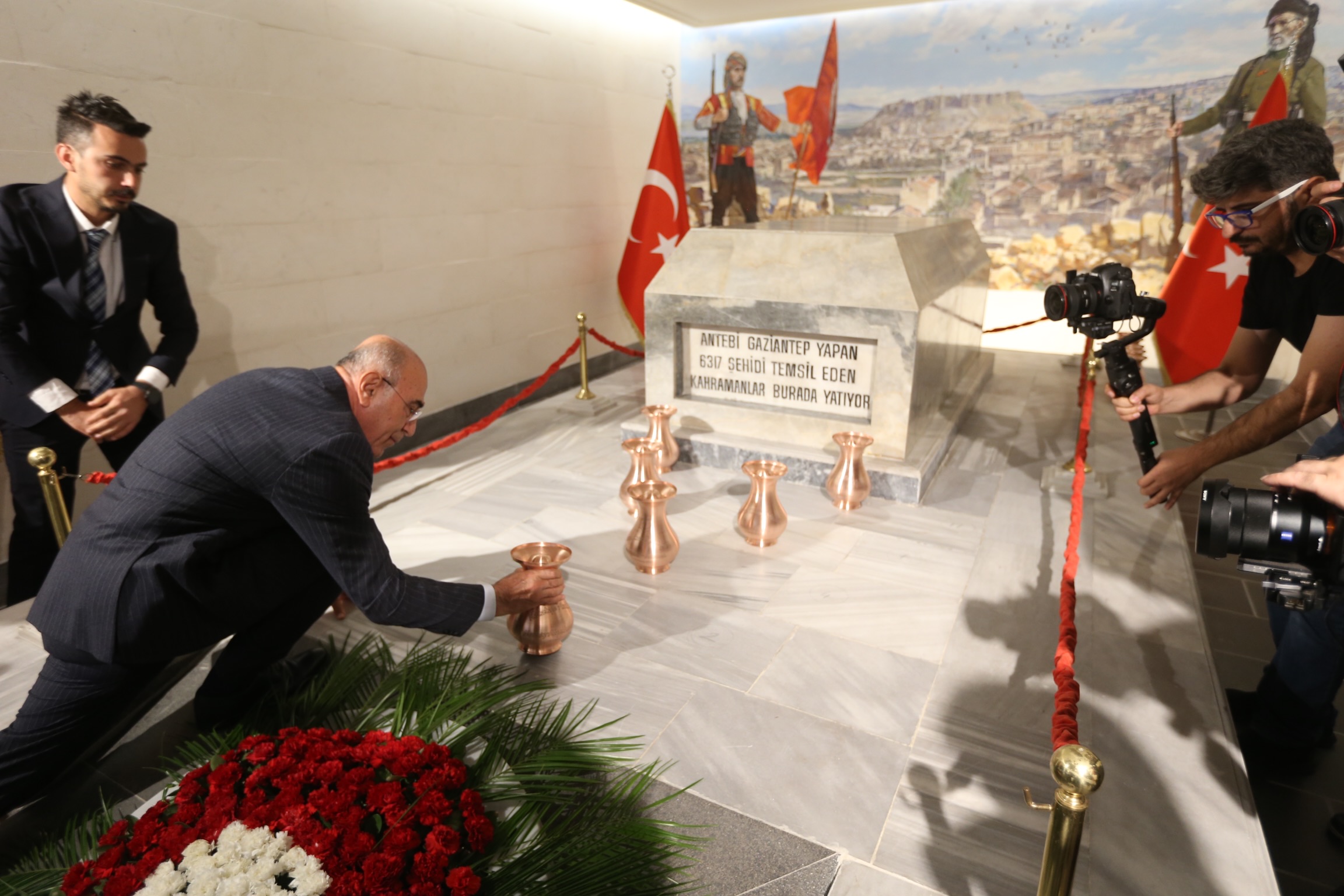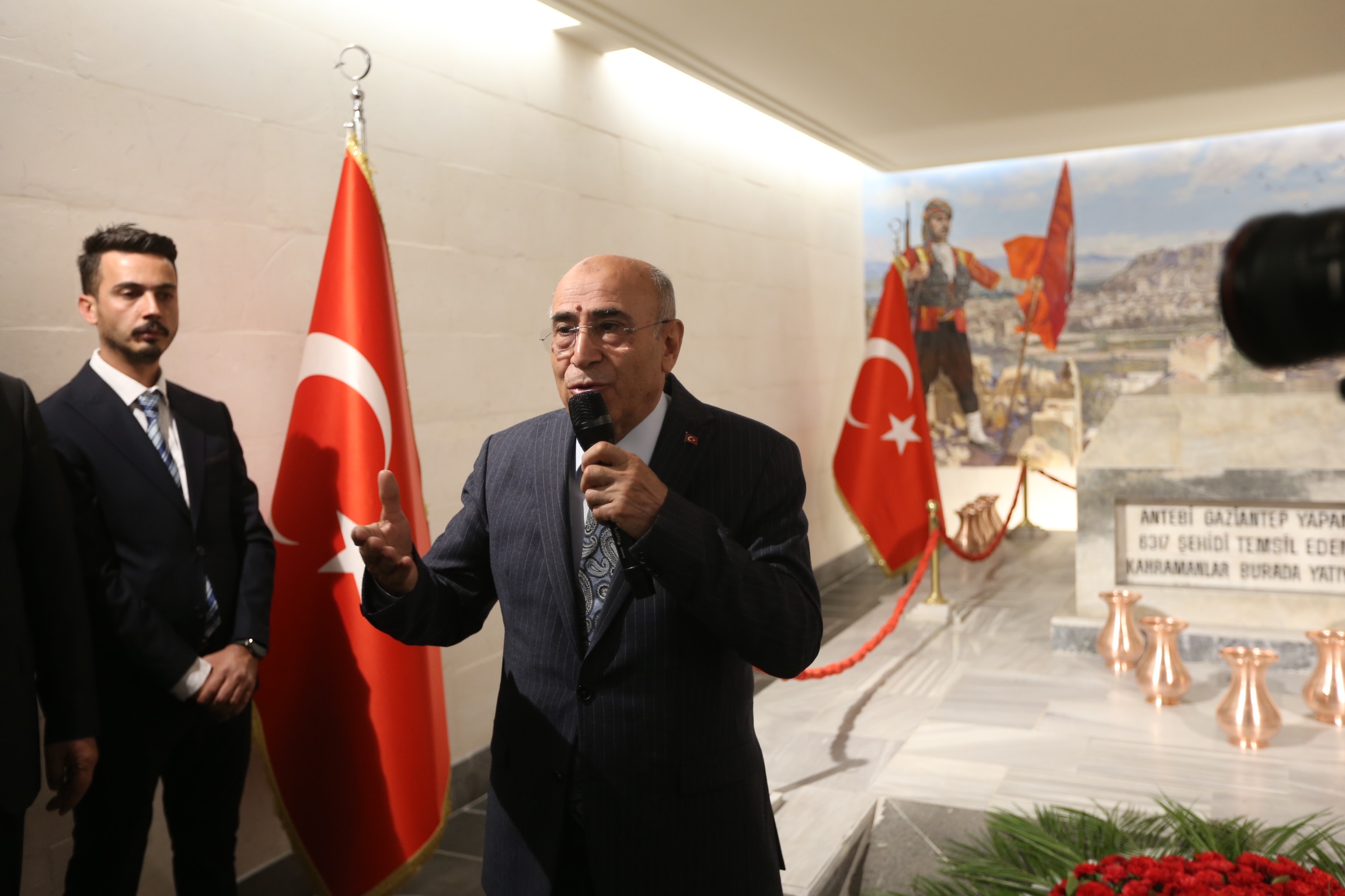 “Bugüne kadar bu insanları yeteri kadar anmadık. Biz bu kahramanların izini sürdük ve ayak bastıkları savaştıkları yerlere gittik. İzmir’de Yüzbaşı Şerafettin, Türk Bayrağı’nı diktiği sırada o alanda Antepli süvariler vardı. Antep Savunması demek Türk Kurtuluş Savaşı demek. Türk Kurtuluş Savaşı demek Antep demek. Biz Antep’i savunurken Anadolu’nun her yerinden insanlarla birlikte bu kenti savunduk. Bu bölge çevre illerle bir bütün. Gaziantep demek Sakarya, Afyon, Dumlupınar demek. Biz gazilerimizin, şehirlerimizin ayak izini takip ettiğimizde bu bilgiye ulaşıyoruz. Türkiye’nin birliği ve beraberliği açısından bu konuya sahip çıkmak önemli. 22 ayrı bölgeden aldığımız toprakları bakır kaplar içerisinde şehitliğimize bırakacağız. Sonunda biz bu insanlar anılsın istiyoruz.”
