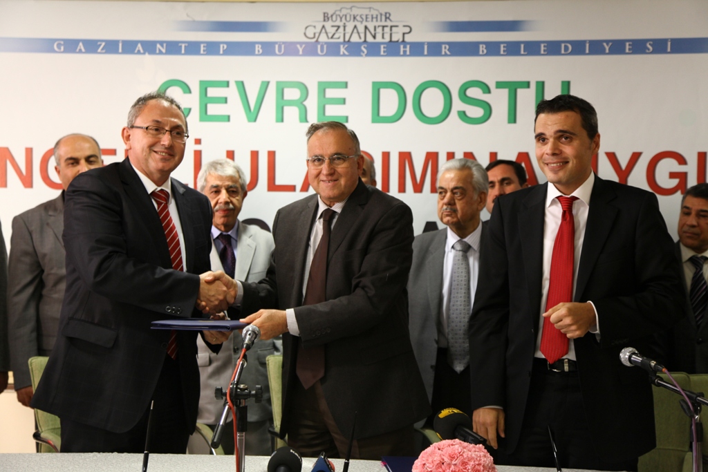 Gaziantep Büyükşehir Belediyesi Meclis Salonu’nun fuayesinde yapılan imza töreninde açıklamalarda bulunan Gaziantep Büyükşehir Belediye Başkanı Dr. Asım Güzelbey, Gaziantep’in bugüne kadar ulaşım sorunun dolmuş ve otobüslerle çözüldüğünü söyledi.