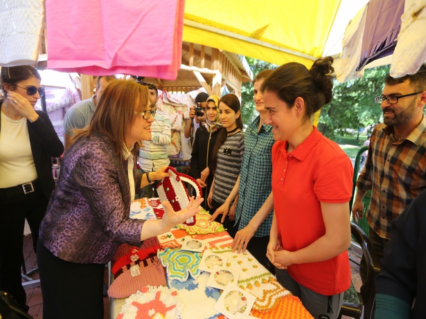 Gaziantep Büyükşehir Belediye Başkanı Fatma Şahin, etkinliğin açılış kurdelesini keserek, engellilerle bir araya geldi.