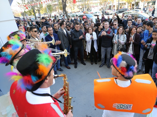 Gaziantep Büyükşehir Belediye Bando Takımı’nın gösterisi eşliğinde gerçekleştirilen yürüyüşe cadde esnafı da katıldı.