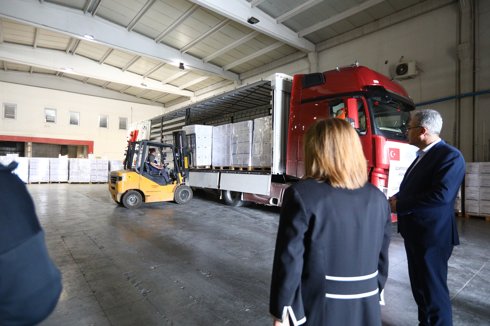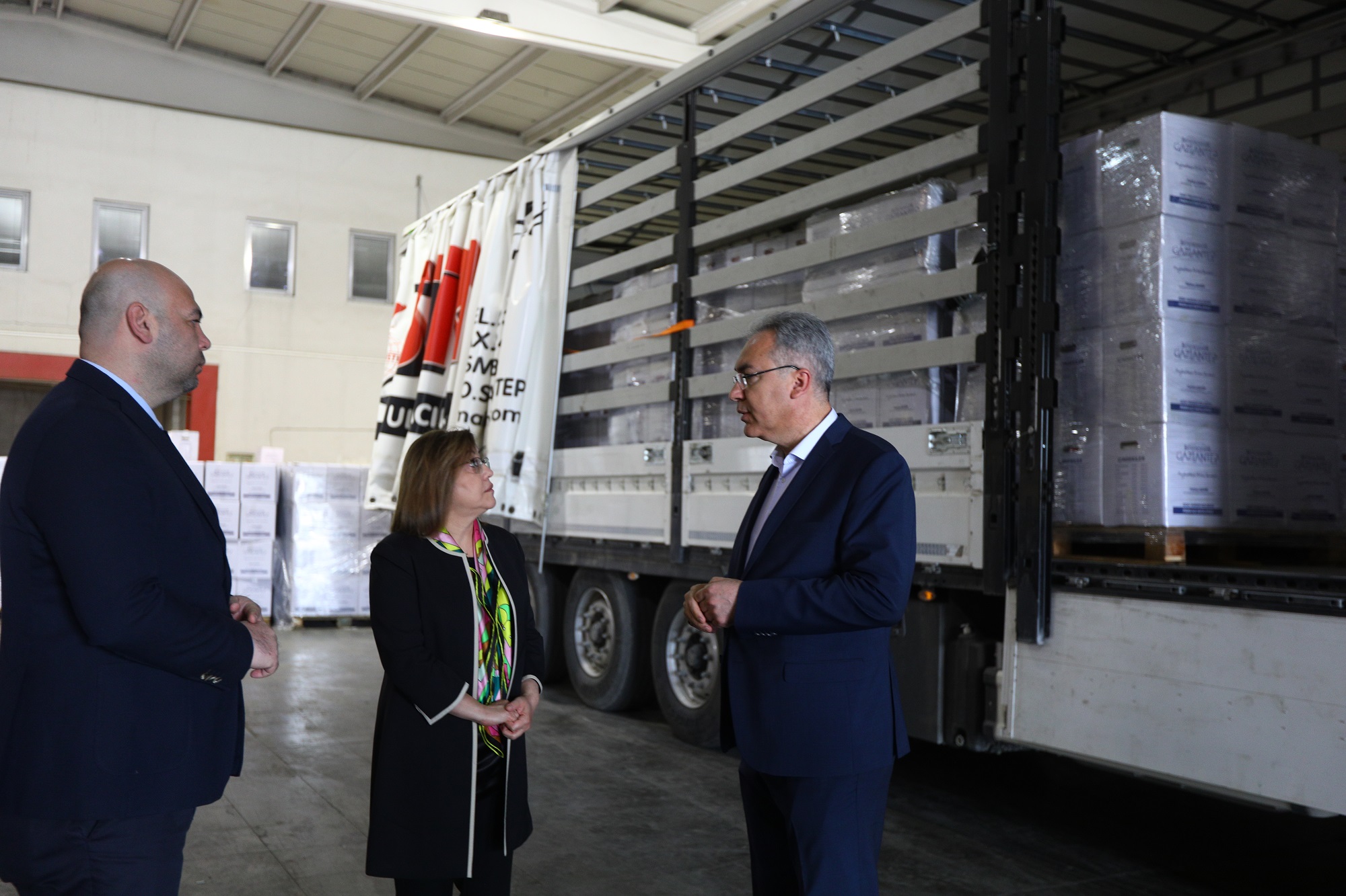 Gaziantep Büyükşehir Belediye Başkanı Fatma Şahin, son hazırlıkları denetlemek ve gönderilen kuru gıda ürünlerini incelemek için, çalışma ekibini ziyaret etti.