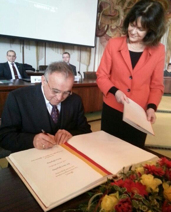Konuşmasının ardından ayakta alkışlanan Gaziantep Büyükşehir Belediye Başkanı Dr. Asım Güzelbey’e, Baden Wuttenberg Eyaleti yetkilileri tarafından, Almanya’nın Duisburg kenti ile Gaziantep arasında başlayan kardeş şehir ilişkileri başta olmak üzere, Ludwigshafen kentinde yaşanan acı olayda, burada yaşayan Türkleri ve Alman halkını sükuna davet edici çabaları ve girişimlerinden dolayı Dostluk Madalyası verildi.