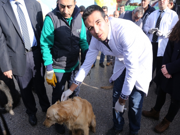 Daha sonra bir köpek üzerinde nasıl aşı ve küpe takılacağı veteriner hekim tarafından kursiyerlere uygulamalı olarak anlatıldı. Köpeğin kuduz olup olmadığını anlamak için yapılan aşının köpeğin belinden yapılırken, küpesi ise kulağının ince tarafından takıldı. Bu işlemlerin ardından hayvanı getiren görevliye hayvan ile ilgili bir de bilgi karnesi verildi.