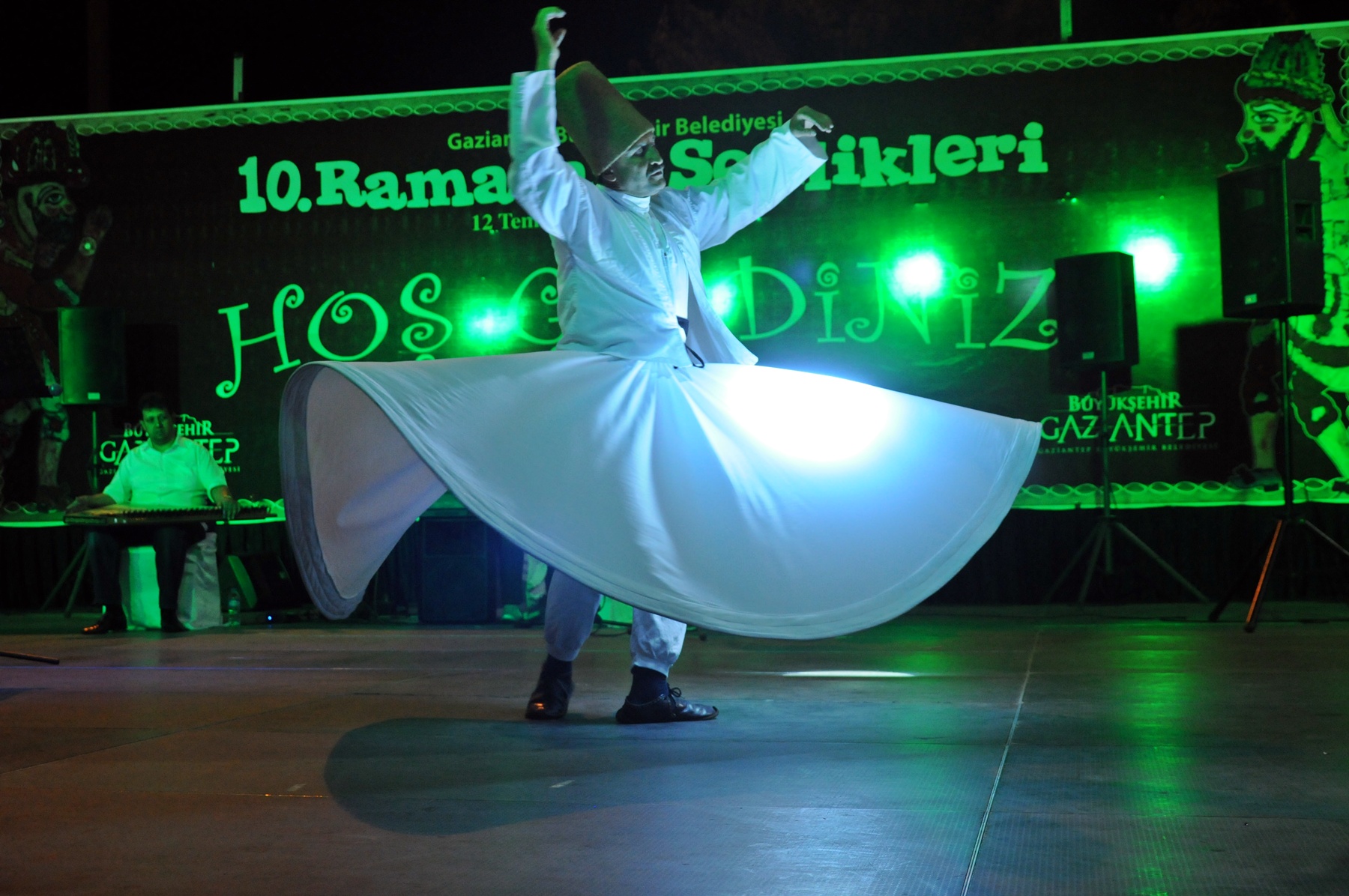Fasıl ve ney dinletisi ile devam eden ‘Ramazan Şenlikleri’ eğlence gecesi sema gösterisi ile son buldu. Programı, Gaziantep Büyükşehir Belediyesi Genel Sekreter Yardımcısı İbrahim Evrim ile Kültür ve Sosyal İşler Daire Başkanı Sema Marangoz da izledi.