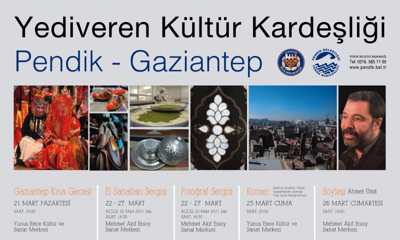 21-28 Mart 2011 tarihleri arasında İstanbulda Yediveren Kültür Kardeşliği Kültür Etkinlikleri haftası kapsamında Gaziantepin kültürü tanıtılıyor.