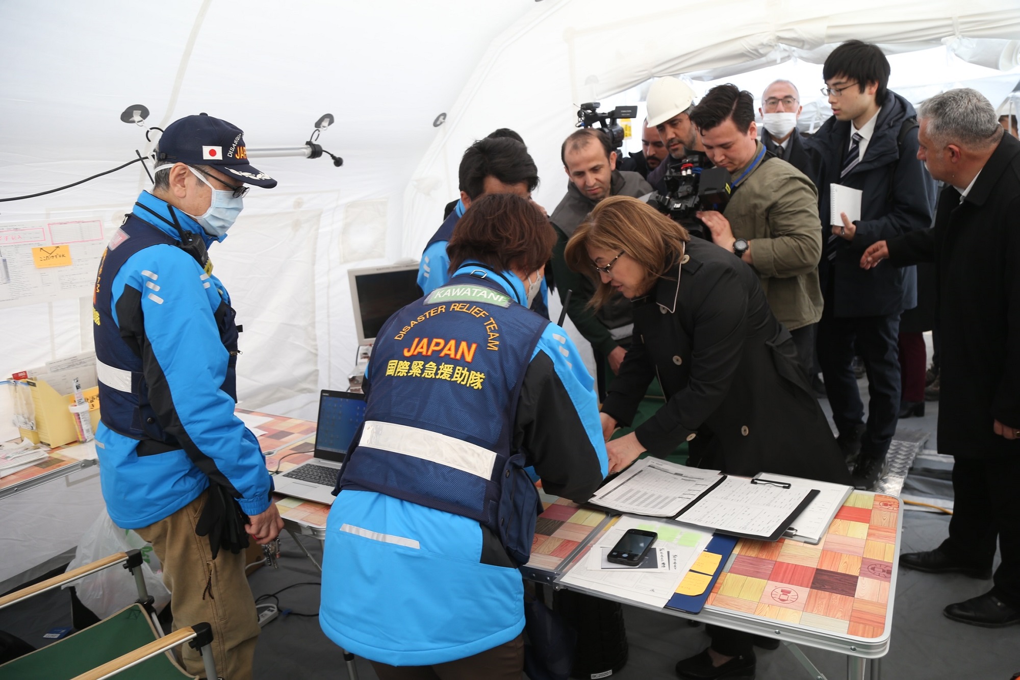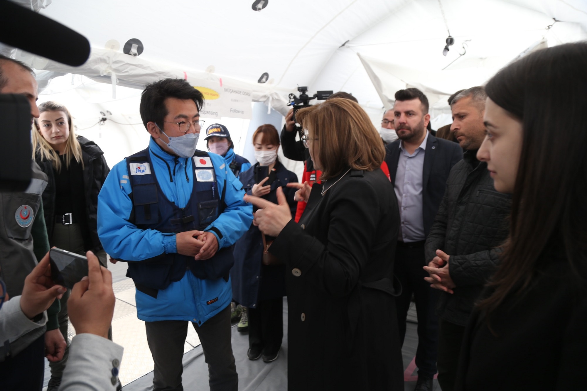 14’ü hekim olmak üzere 70 kişiden oluşan Japon ekip ile ameliyat, tahlil, röntgen gibi hizmetlerin verildiği sahra hastanesi gezen Başkan Şahin, ziyarette, Japonya’dan gelen heyetin başkanı Başhekim Takeshi İshihara’dan hastane hakkında bilgi aldı.