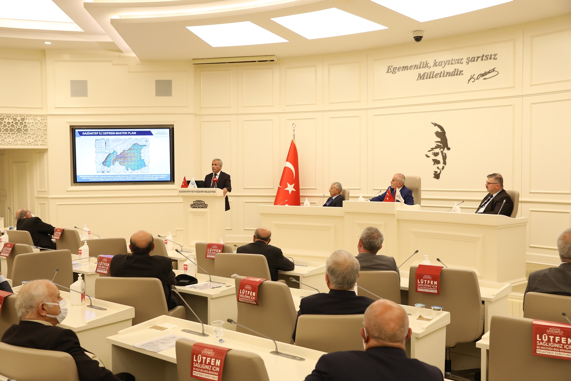 Gaziantep Büyükşehir Belediyesi tarafından hazırlanan “Deprem Master Planı” ile “Gaziantep’in Kurtuluşu’nun 100’üncü Yılı Kapsamında Yapılacak olan Etkinlikler” konularının sunumlarının yapıldığı Gaziantep Kent Konseyi 5’inci Dönem 6’ncı Genel Kurulu Toplantısı gerçekleşti.