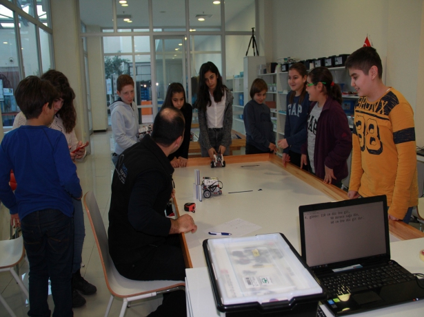 Minikler, küçük mühendislik atölyesinde, mühendislik ve problem çözme kavramlarıyla, robot programlamada algoritma ve kod yazmayla, asrohobide gökbiliminin temel kavramını eğlenerek öğrenme şansı elde etti.
