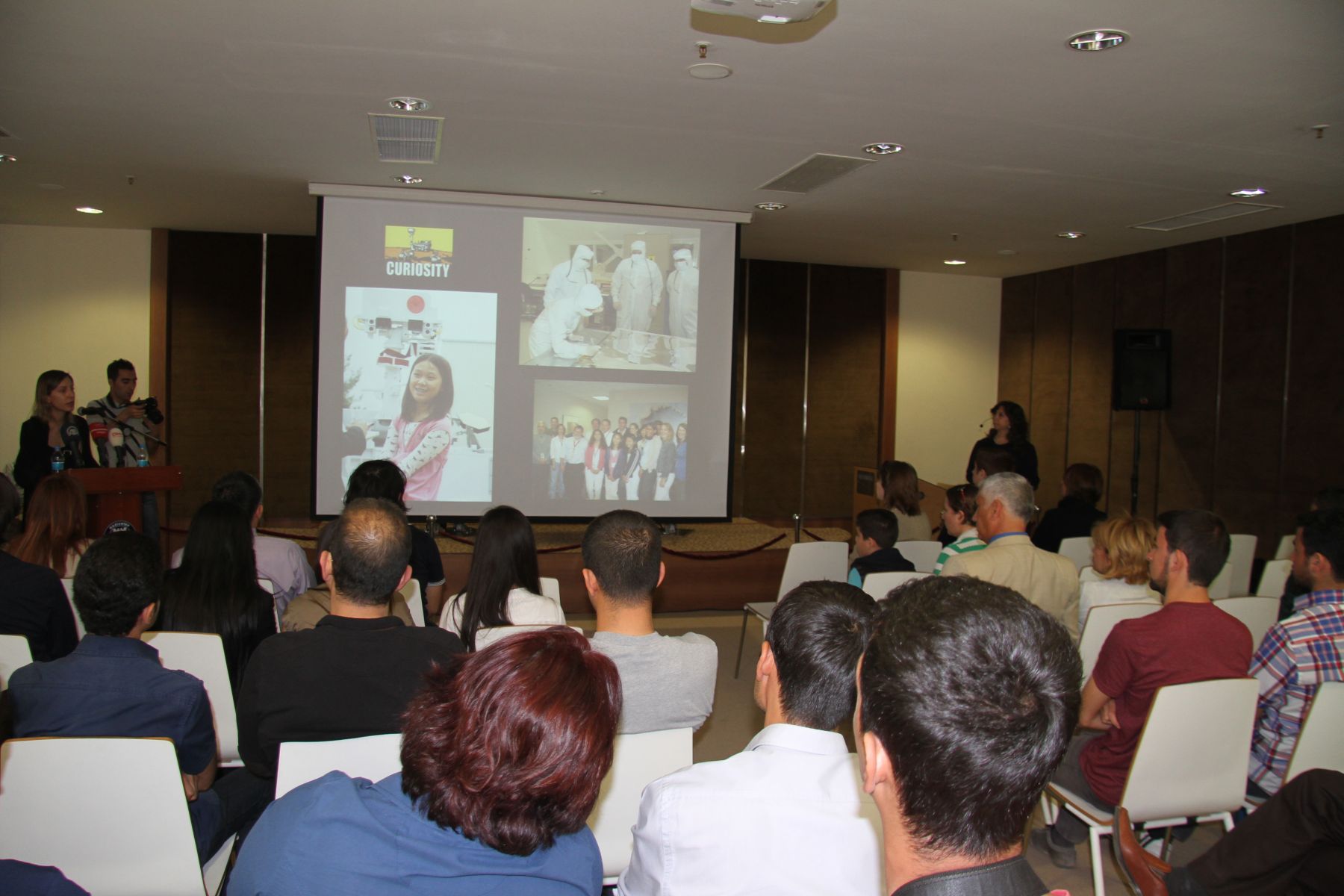 “Nasıl ki siz Türkiye’de Türkçe dilini kullanıp birbiriniz ile anlaşıyorsunuz, bizler de bilim ve matemetik dilini kullanarak birbirimiz ile iletişim kuruyoruz. Bana hep kızlardan ve erkeklerden burada çalışabilmem için ne gibi bir eğitim almalıyım? gibi sorular geliyor. Ben de onlara şöyle diyorum: Herhangi bir mühendisliğin dalında okumanız ve daha sonra bunu şekillendirmeniz gerekiyor. Farklı alanlarda okuyup da daha sonra mühendis olmak zor. Ancak önce mühendislik okuyupta daha sonra mesleğinizi şekillendirmek daha kolay. Dolayısıyla bir mühendislik dereceniz varsa sonra daha kolay hareket edebiliyorsunuz.”